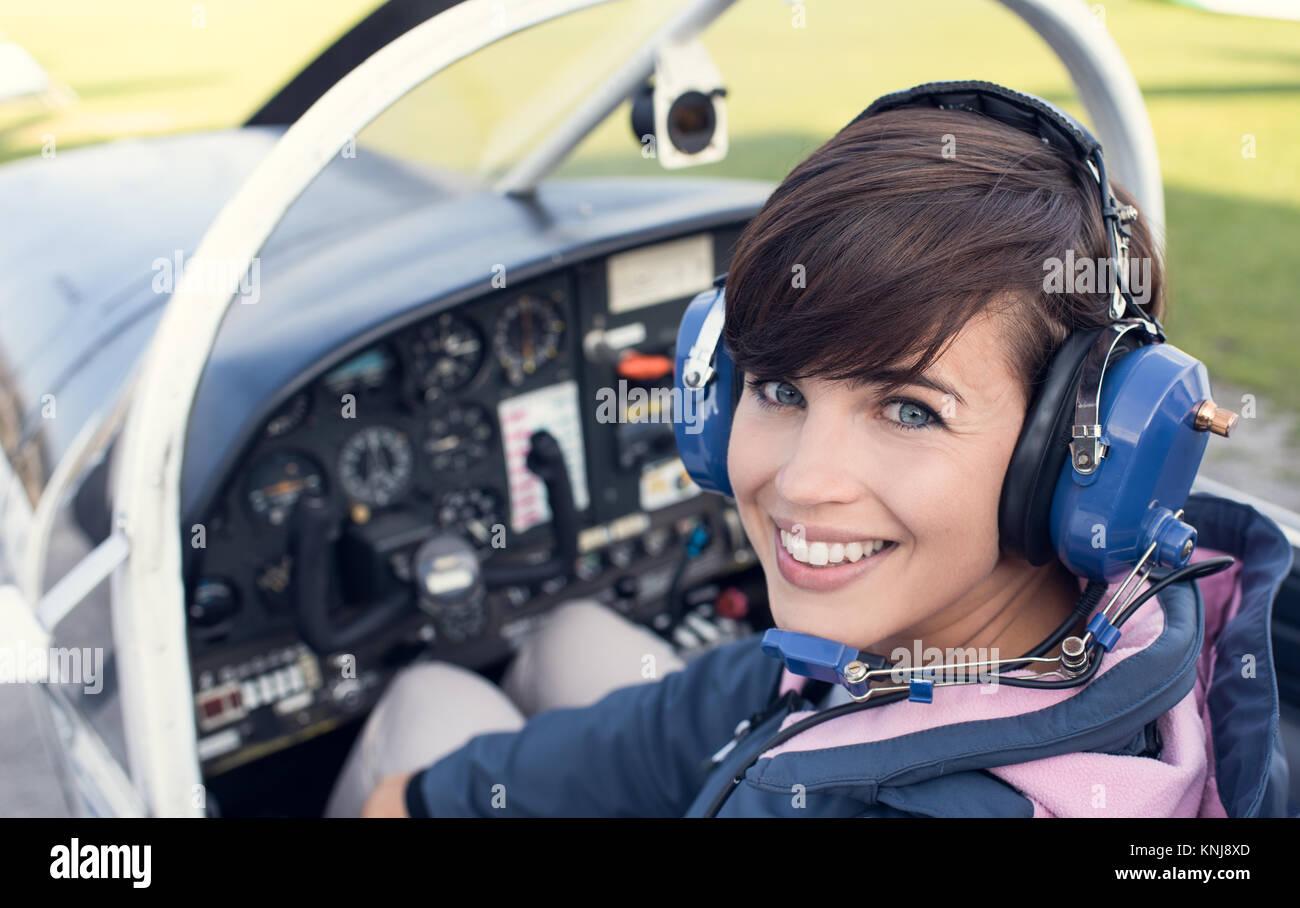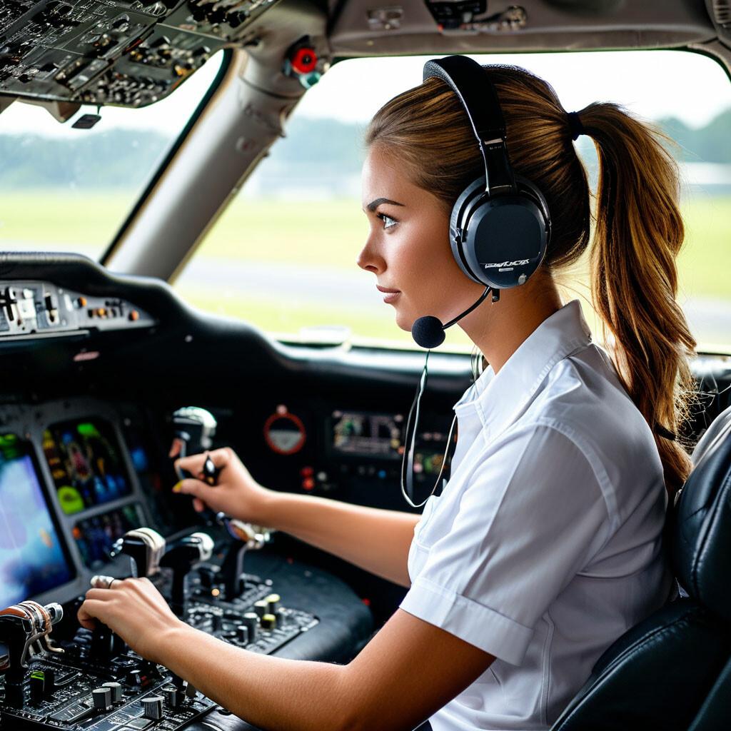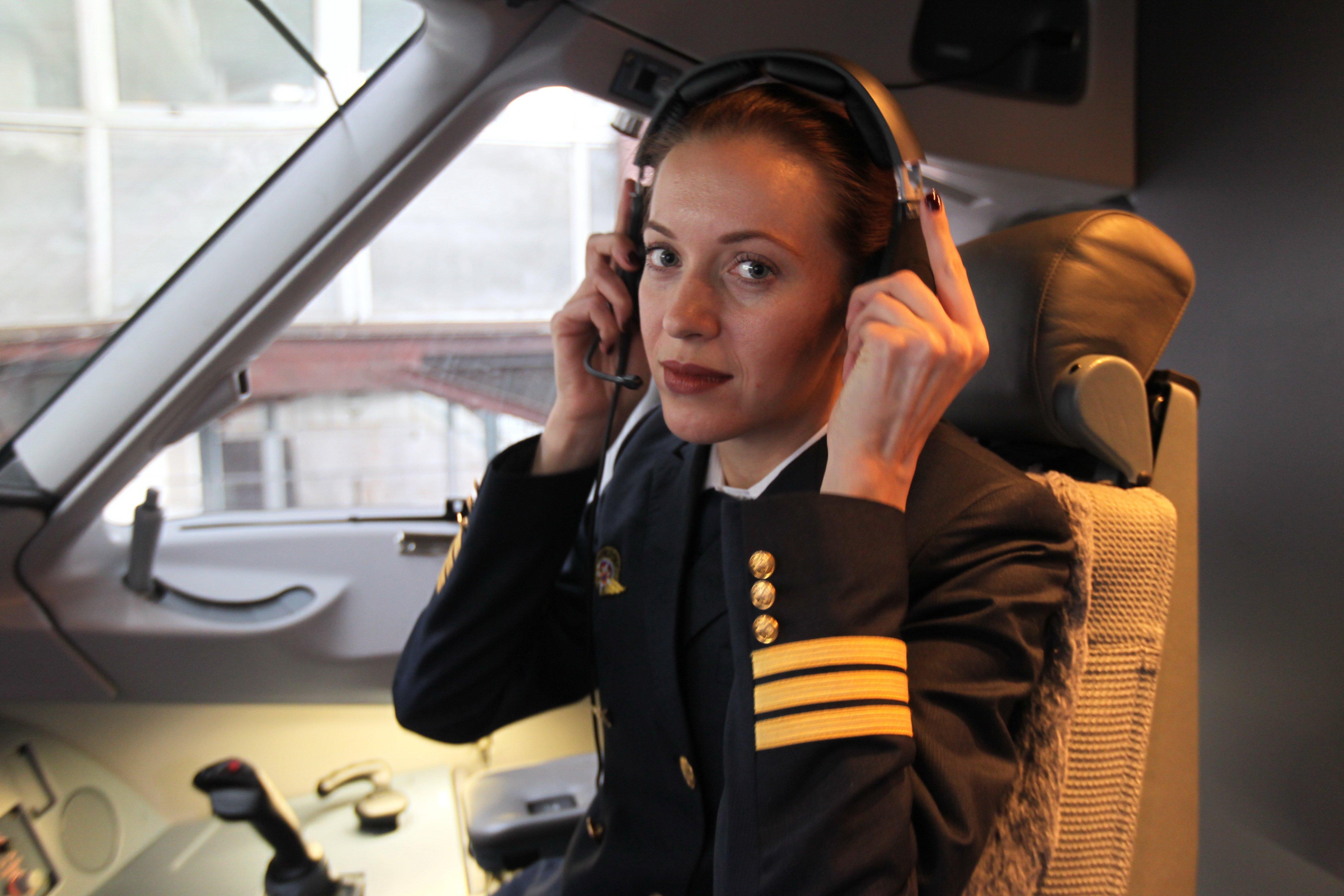 Девушка в кабине самолета