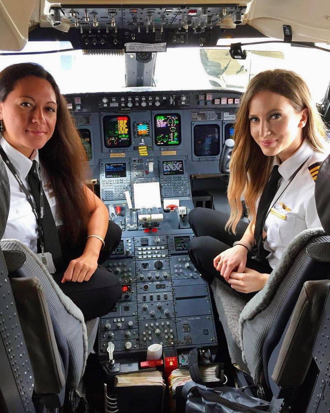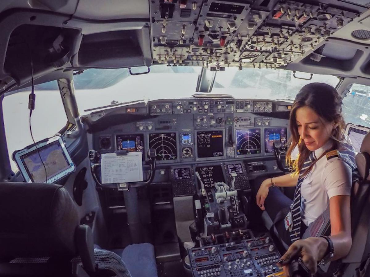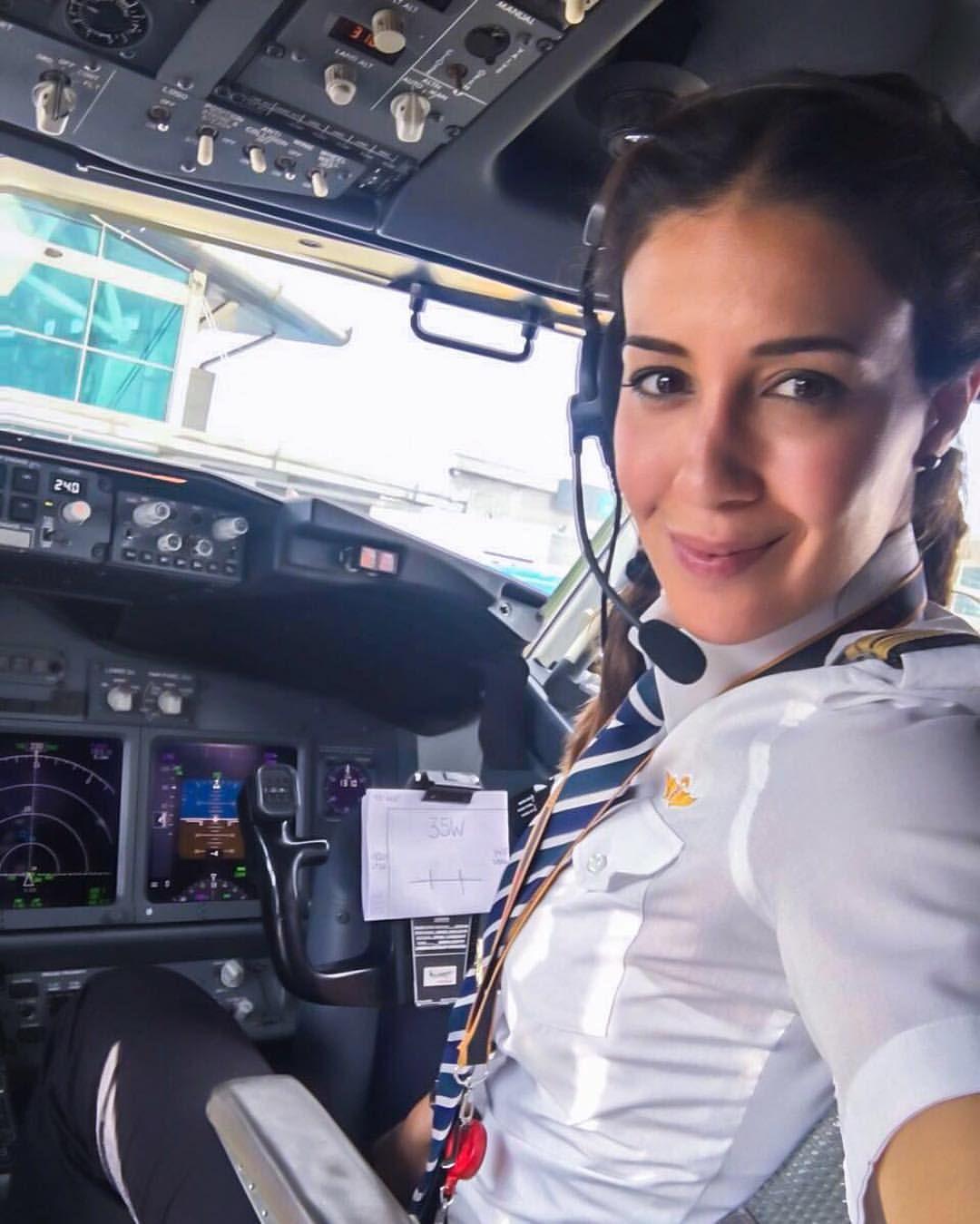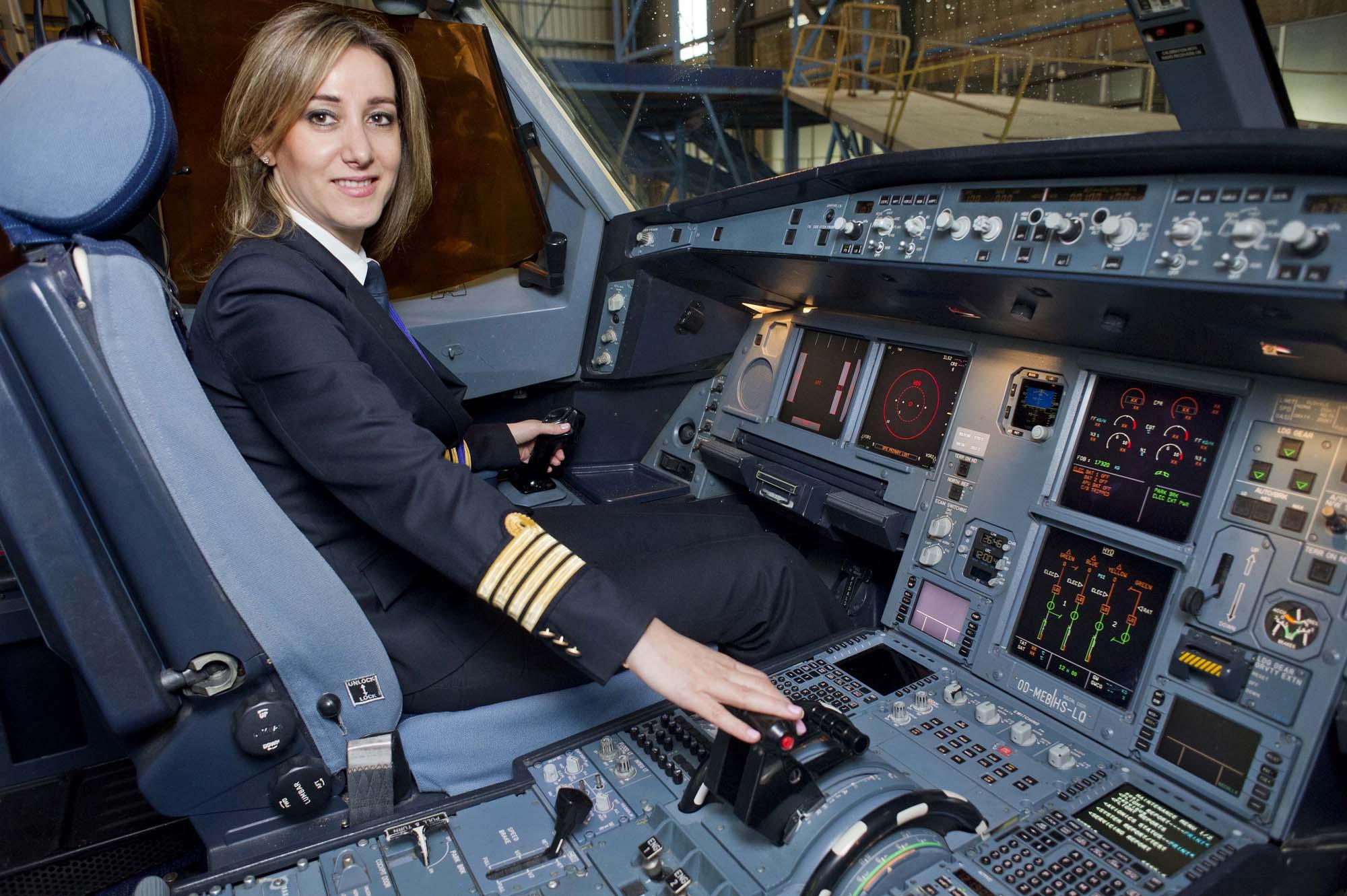 Девушка в кабине самолета