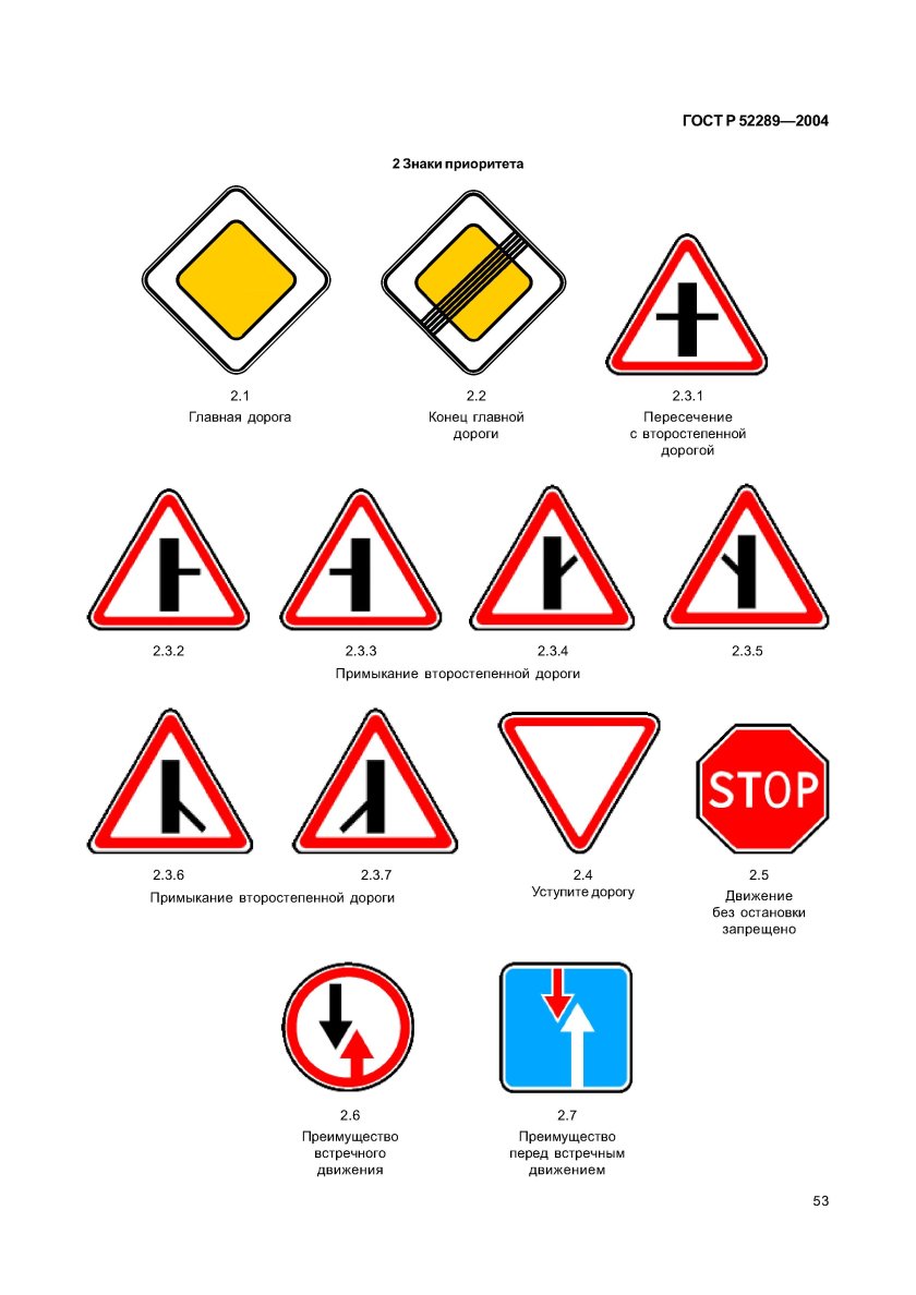 Знаки приоритета ПДД