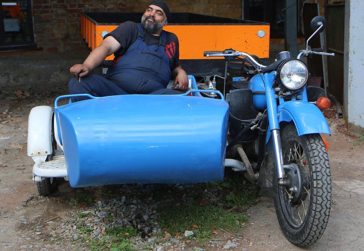 Смешной мотоцикл с люлькой
