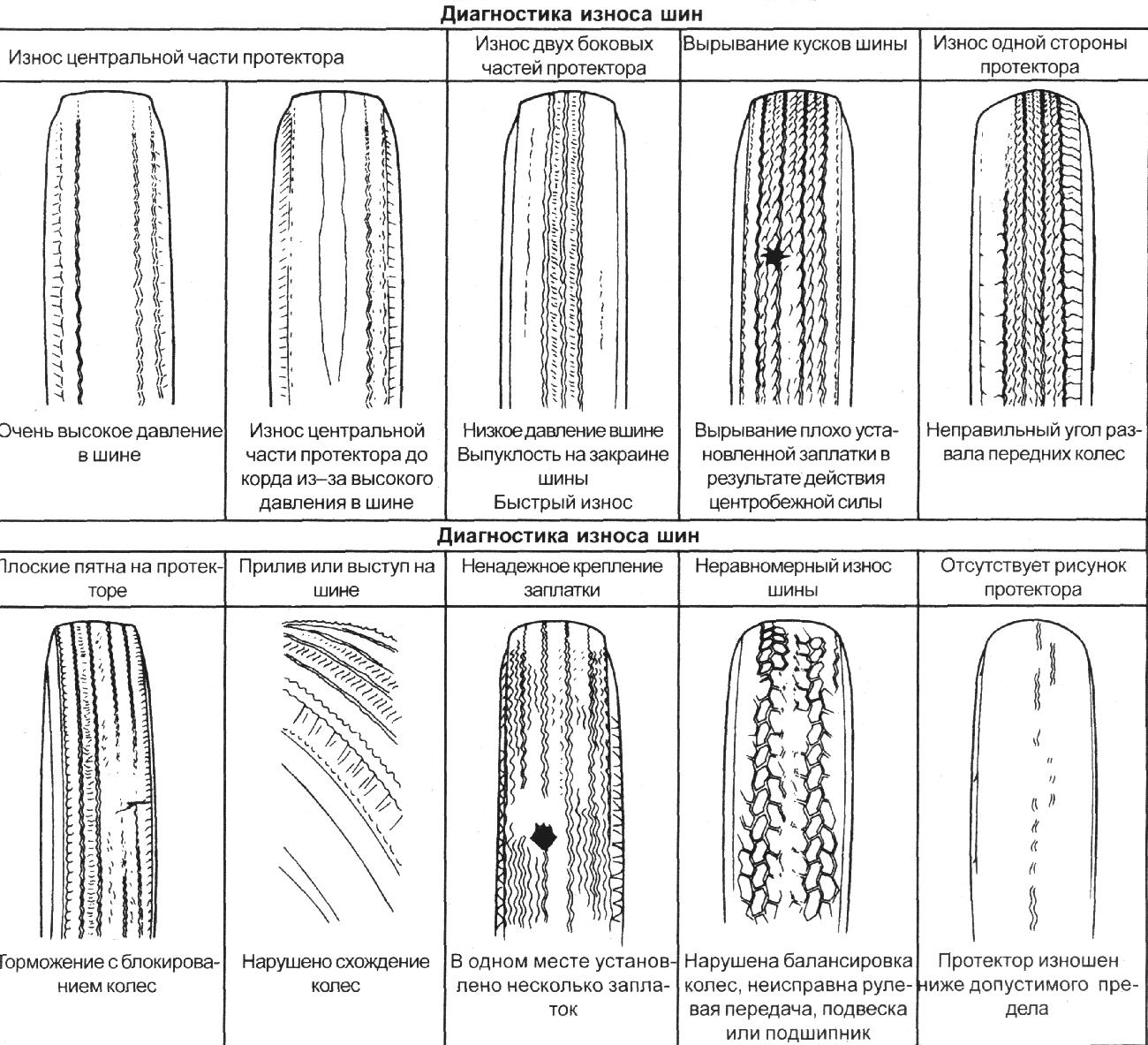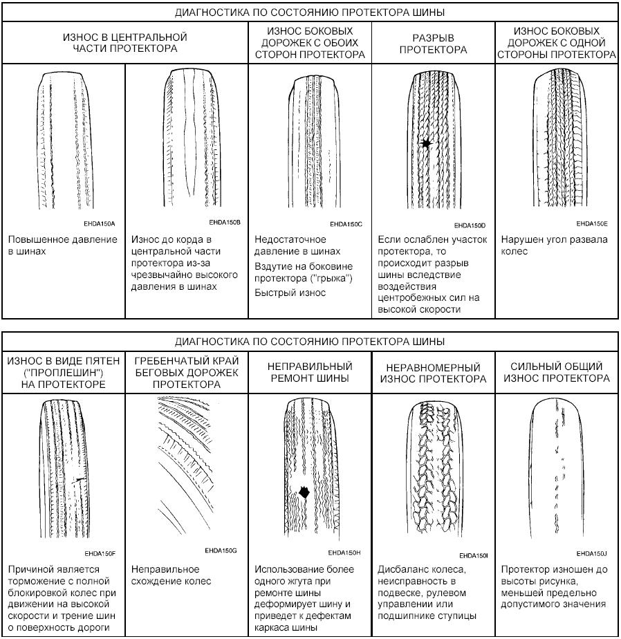Износ рисунок протектора шин