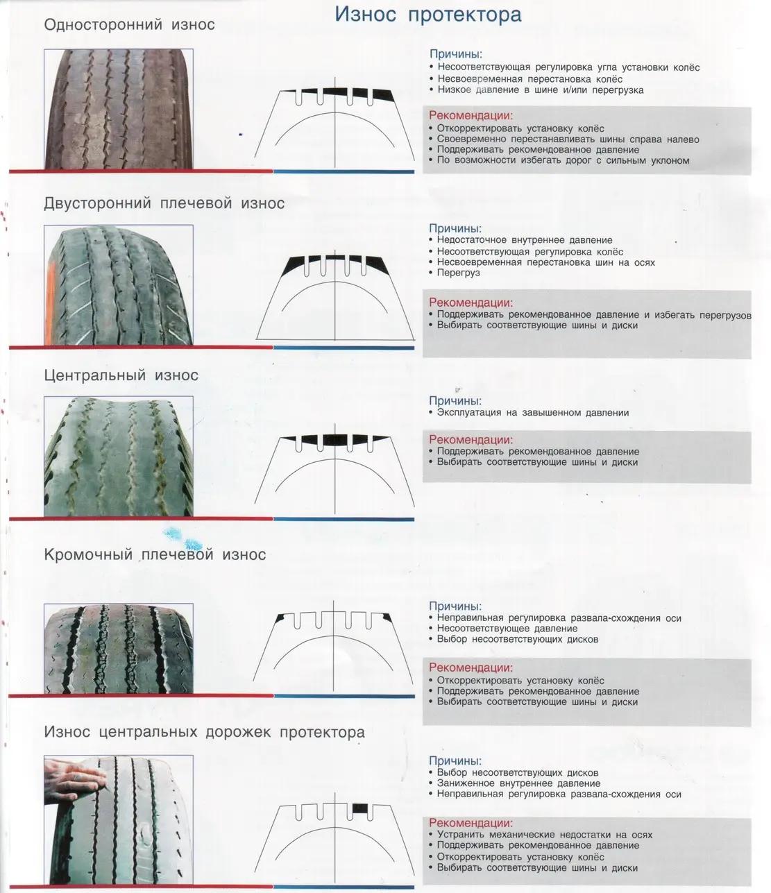 Схема износа резины на грузовом авто