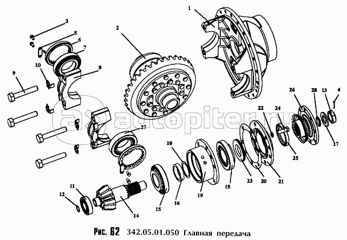 Схема редуктора КАМАЗ 6520 средний мост
