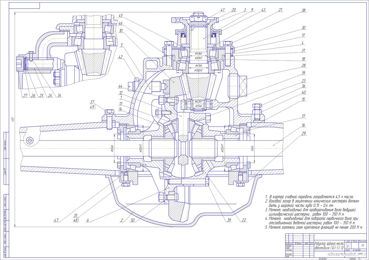 Редуктор заднего моста ГАЗ 3309 схема