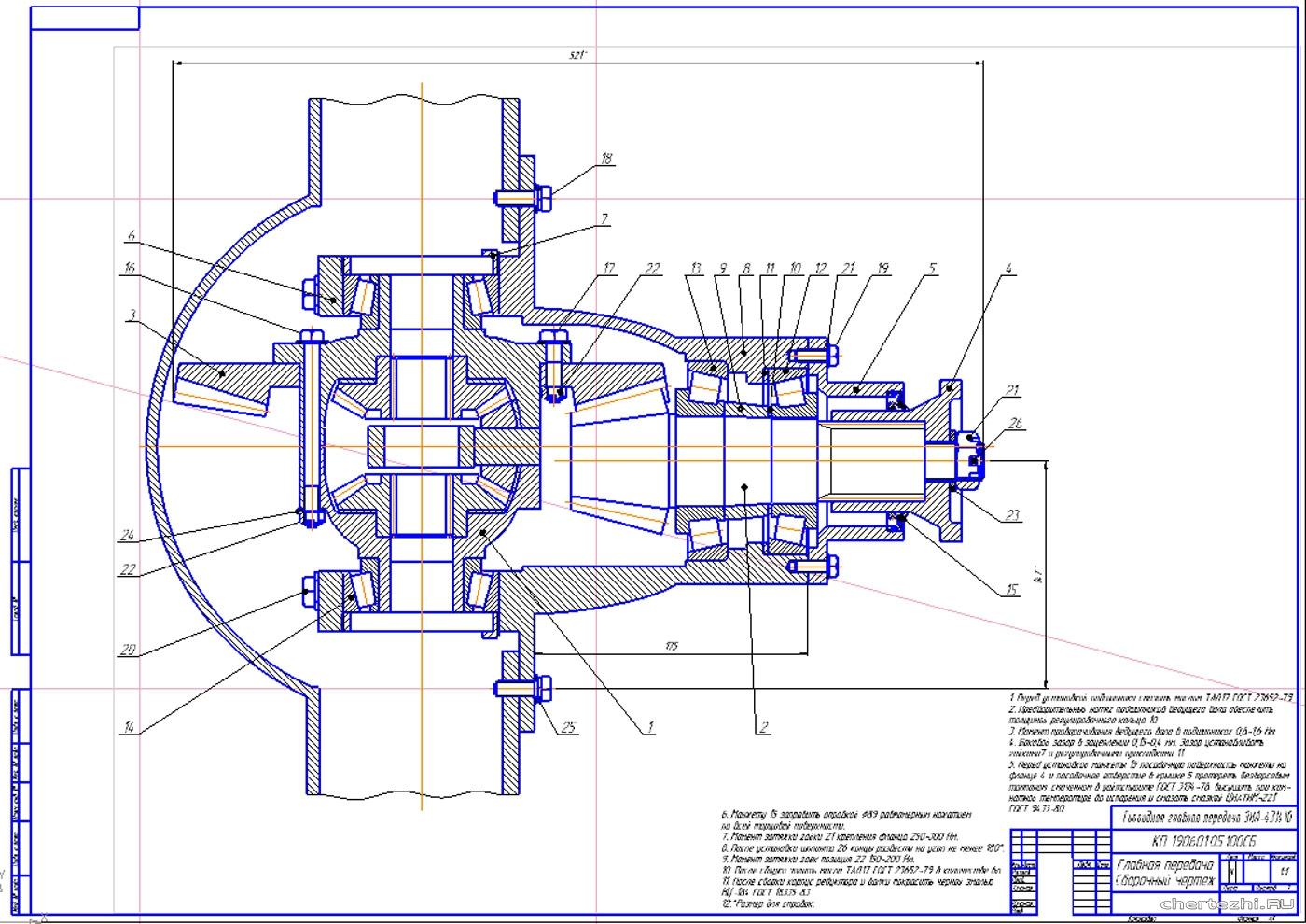 Редуктор заднего моста КАМАЗ чертеж