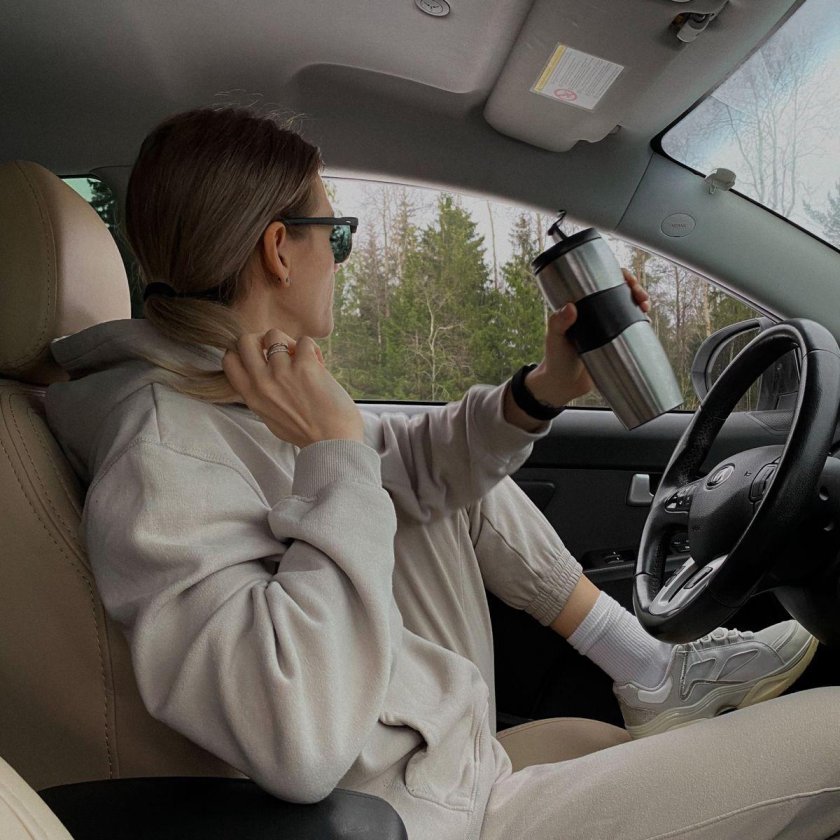 ![Девушка в машине]()