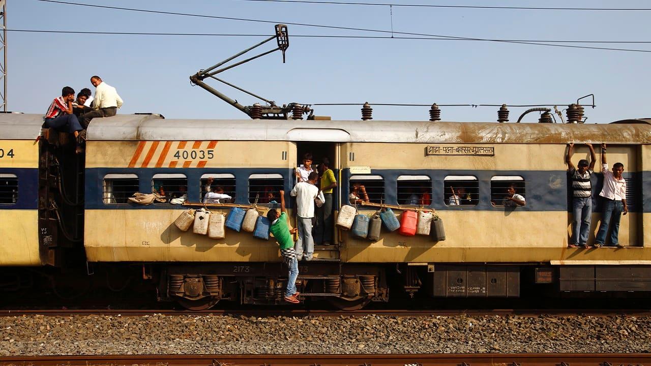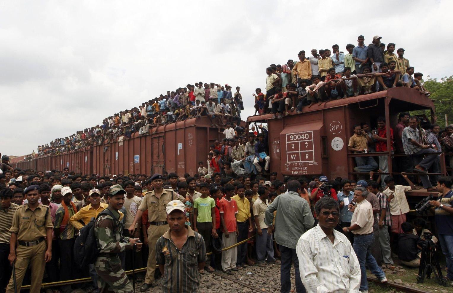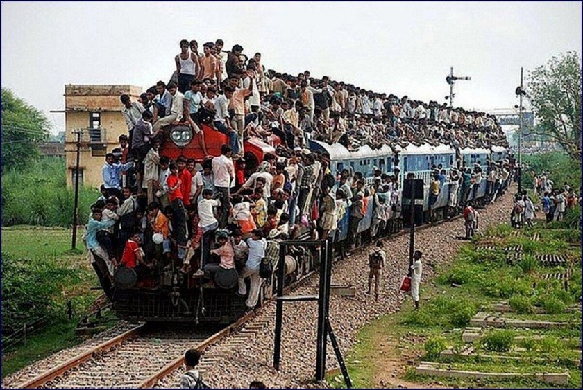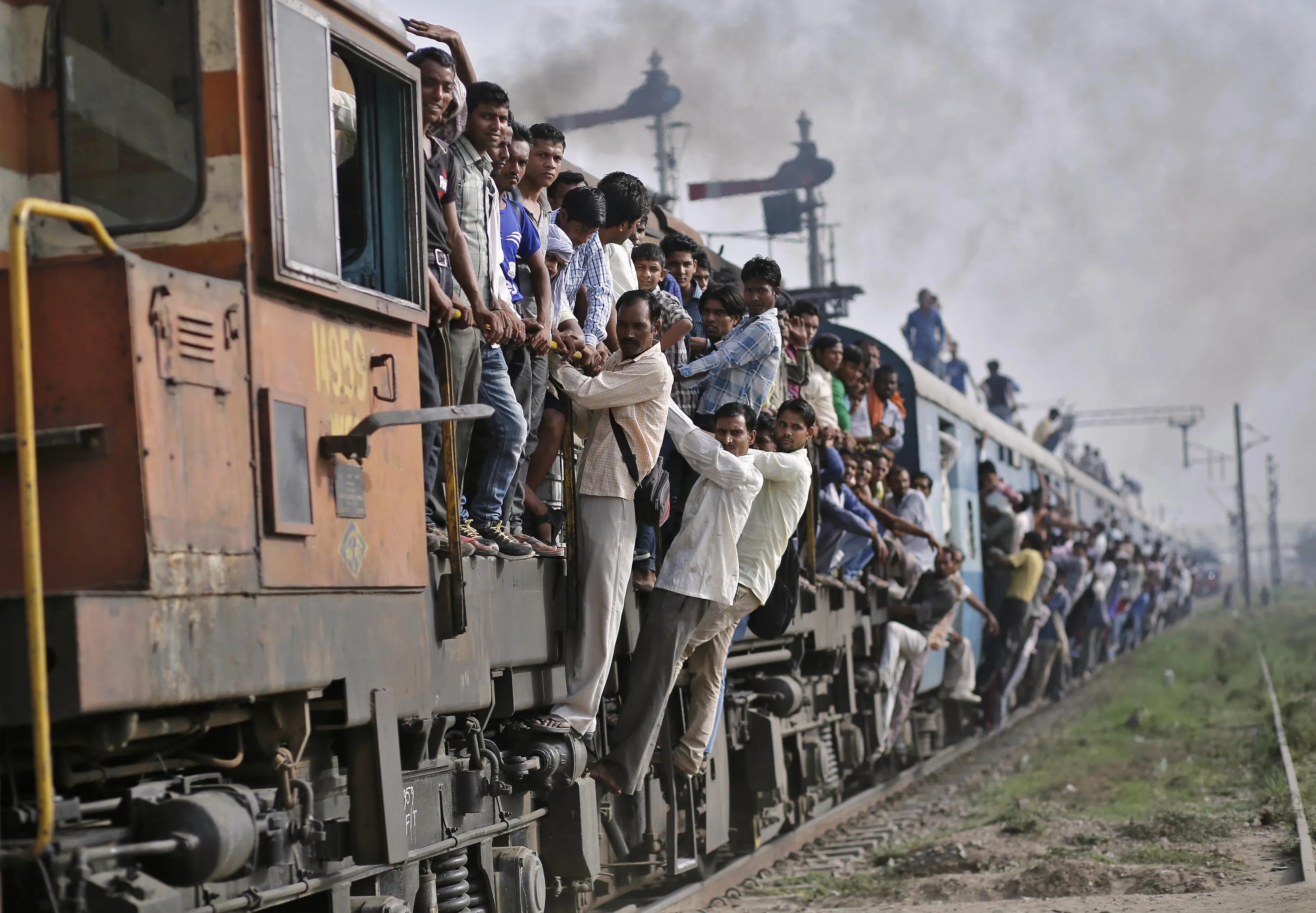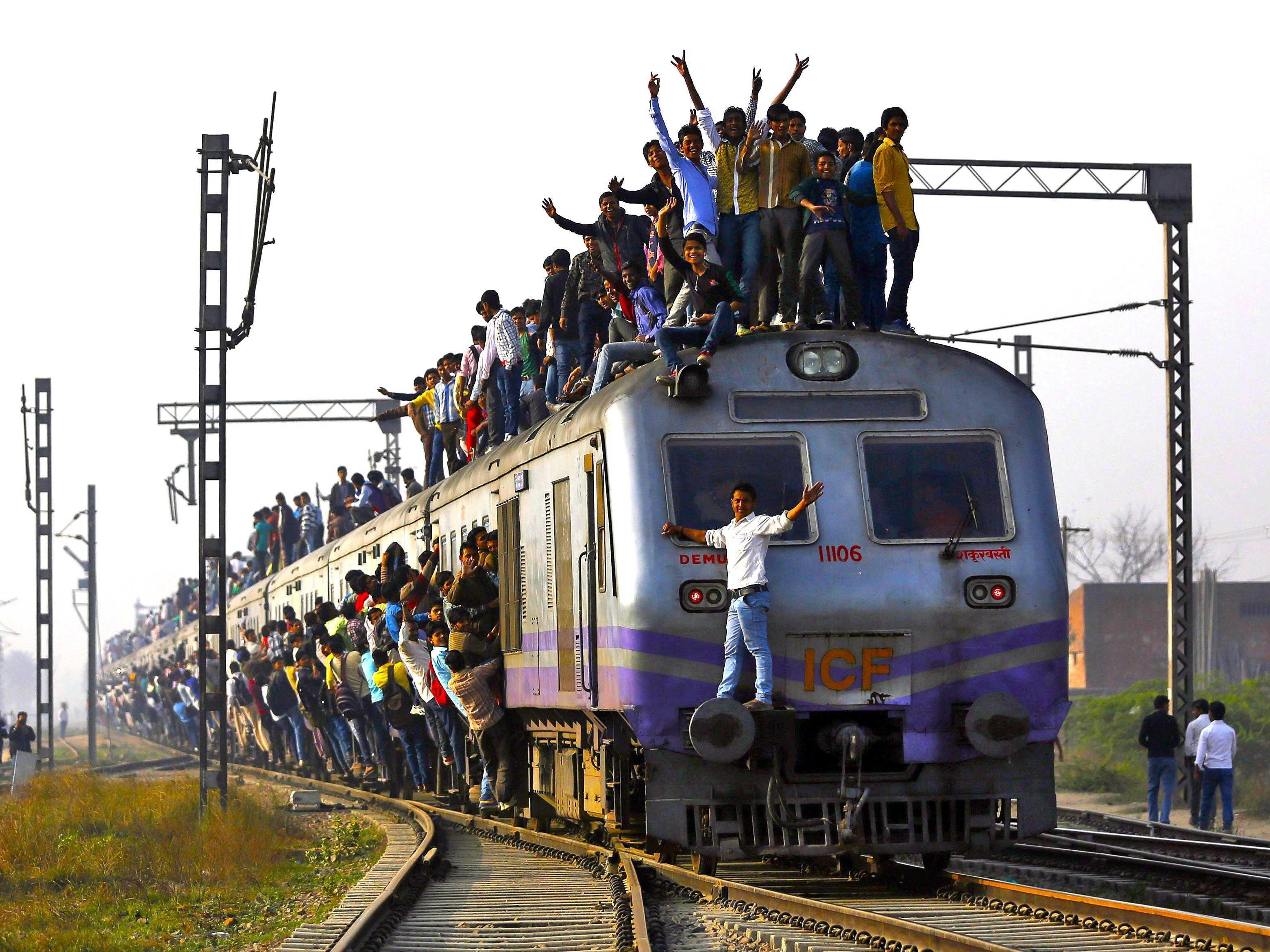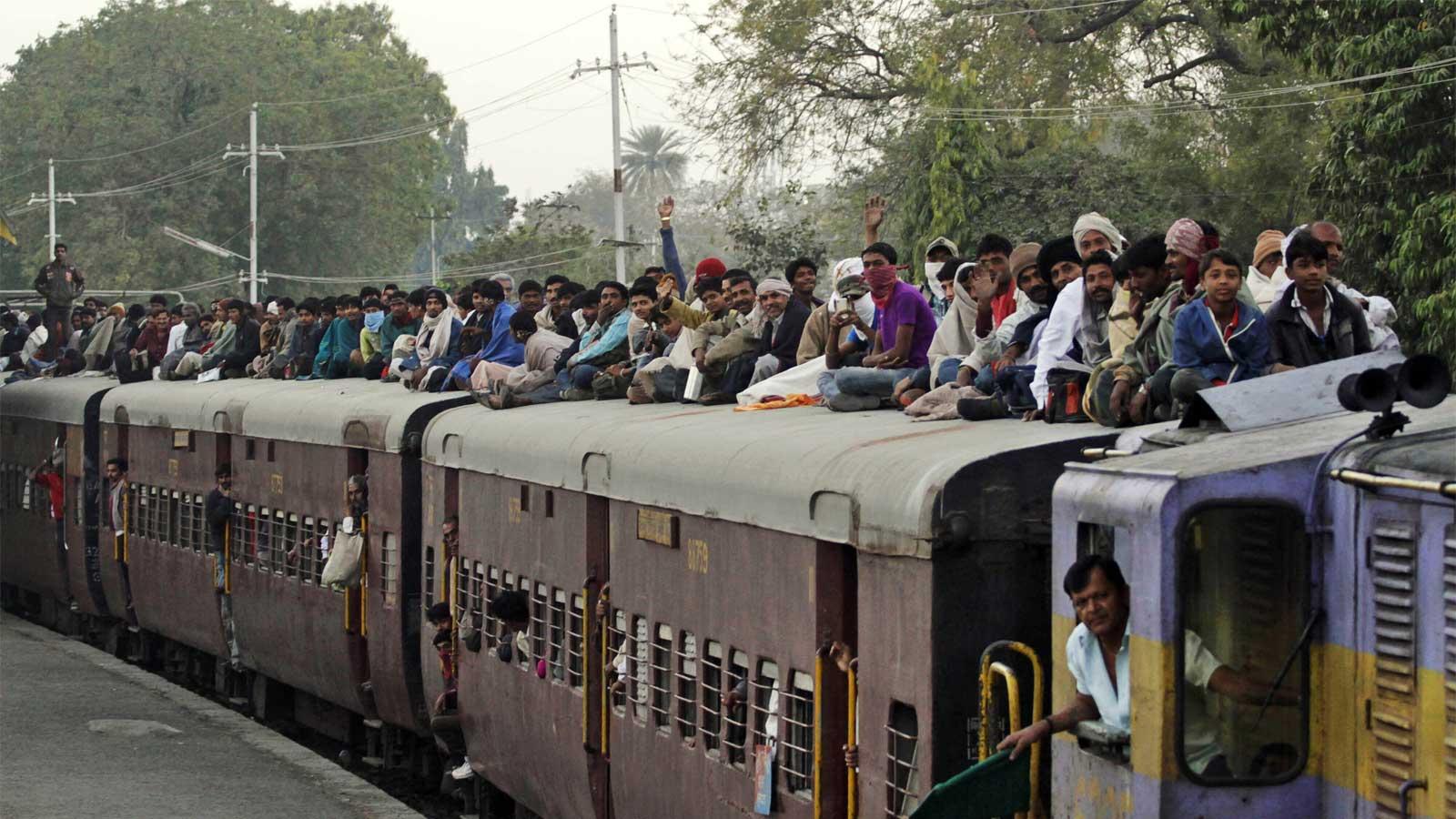 ![Поезда в Индии с людьми на крыше]()