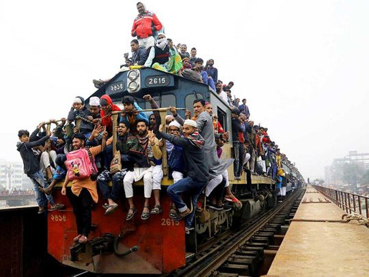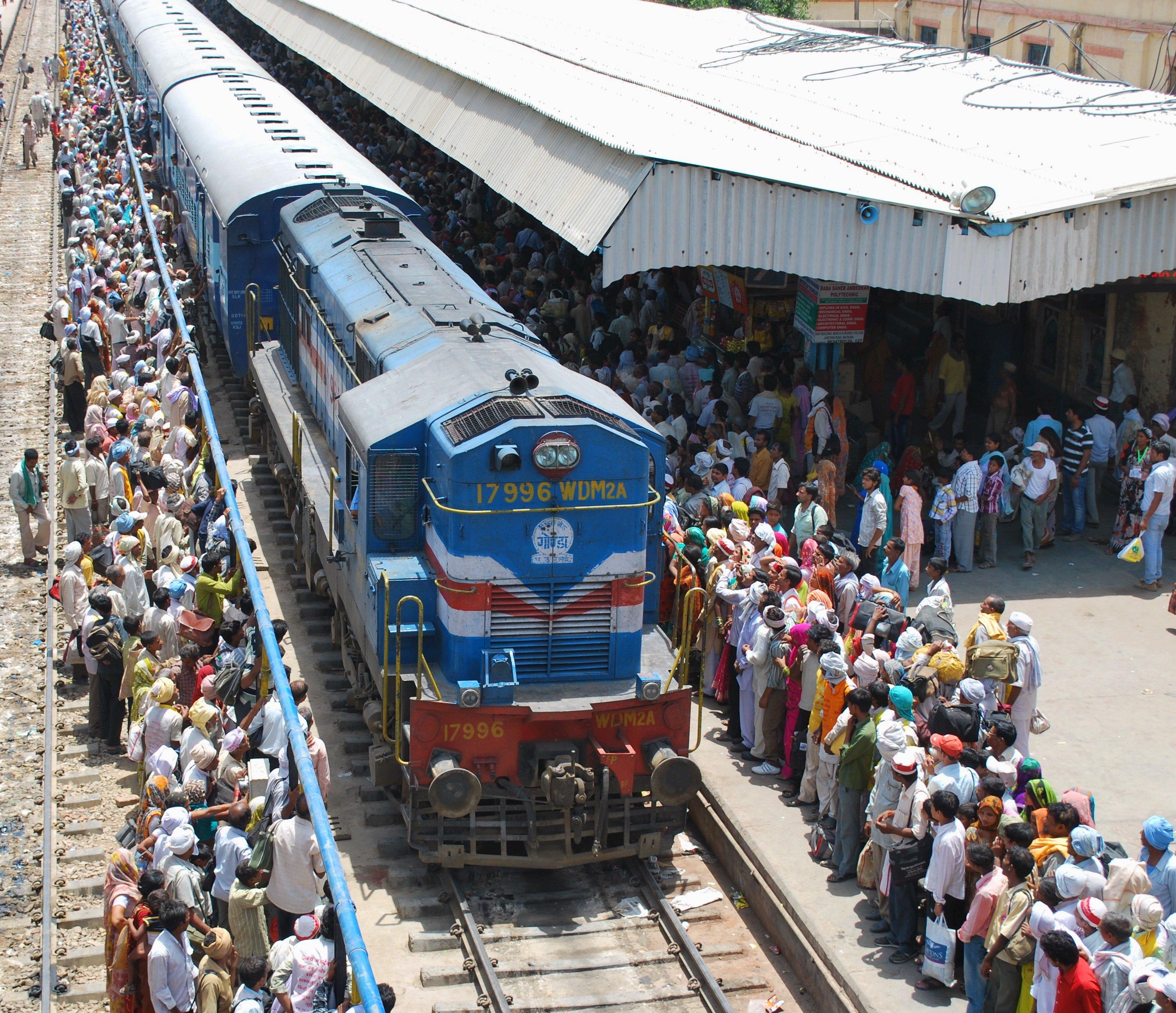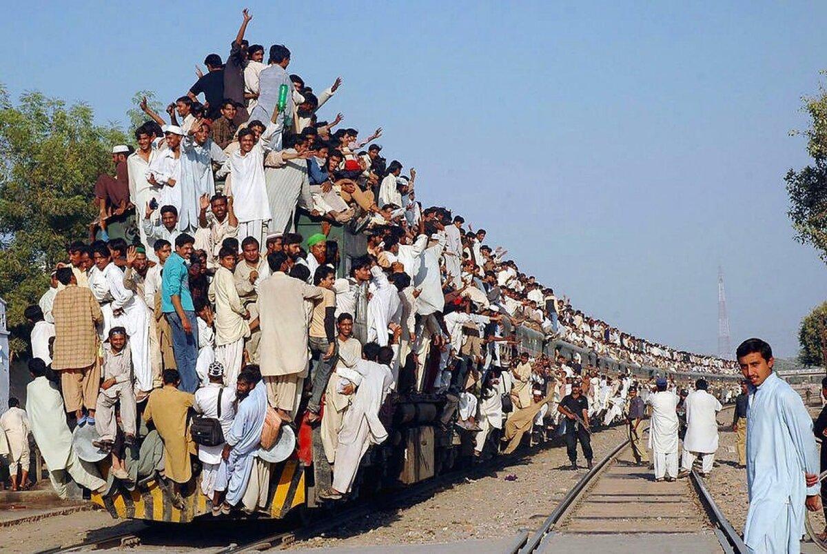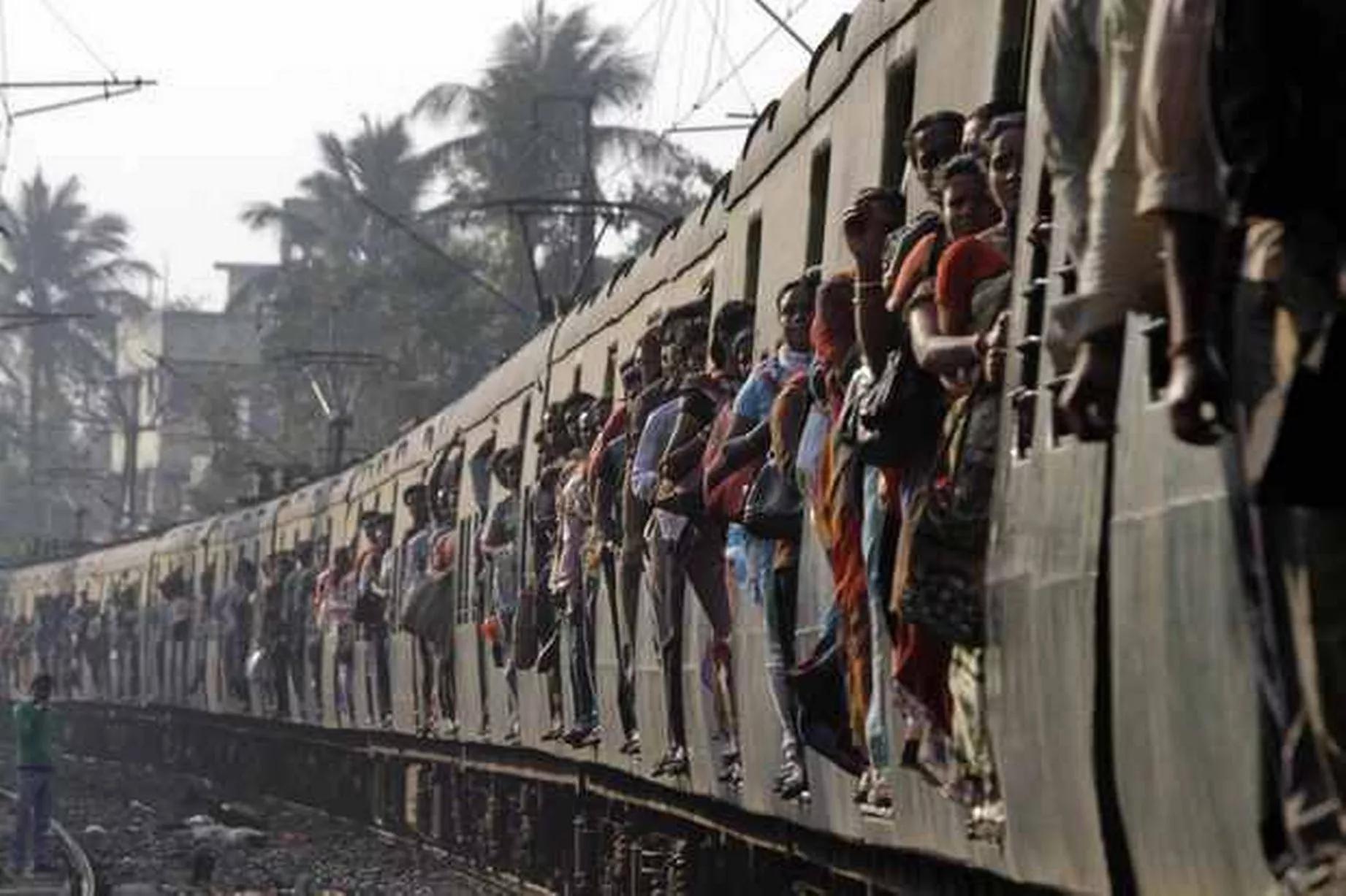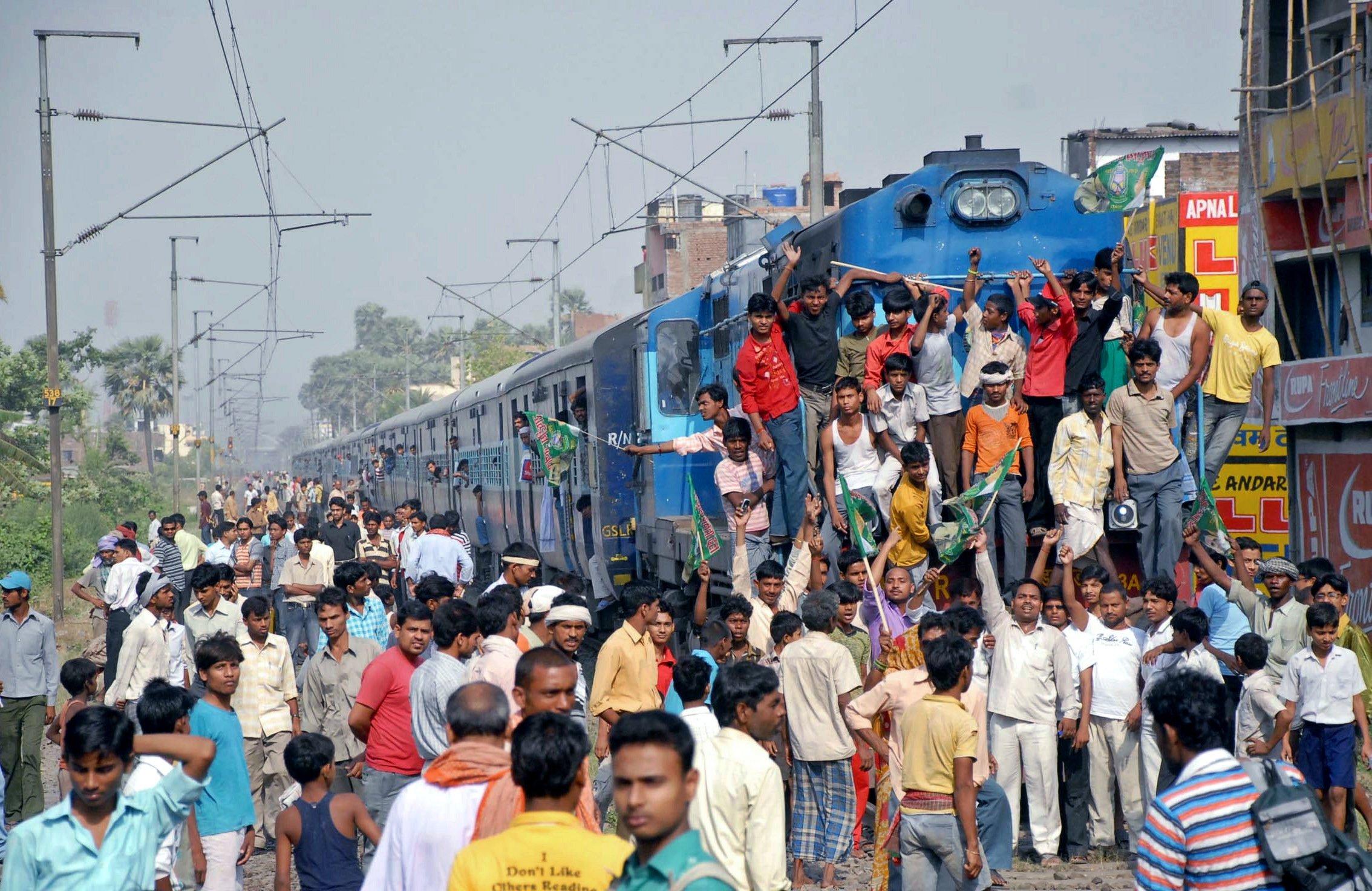 ![Поезда в Индии с людьми на крыше]()