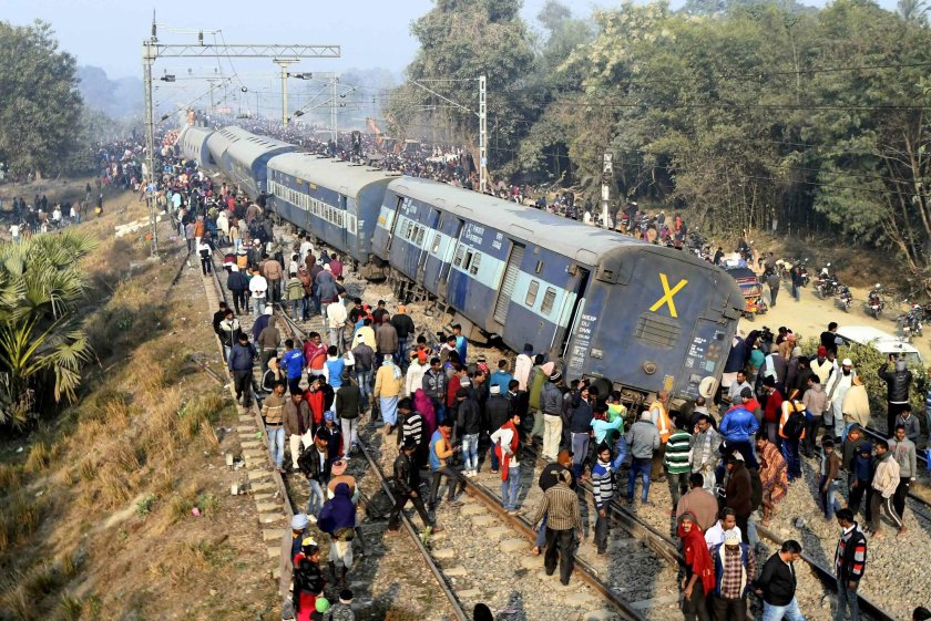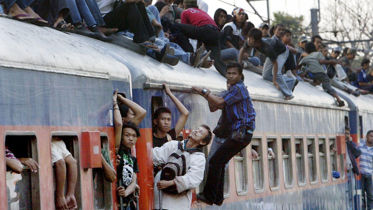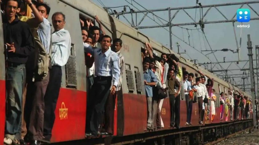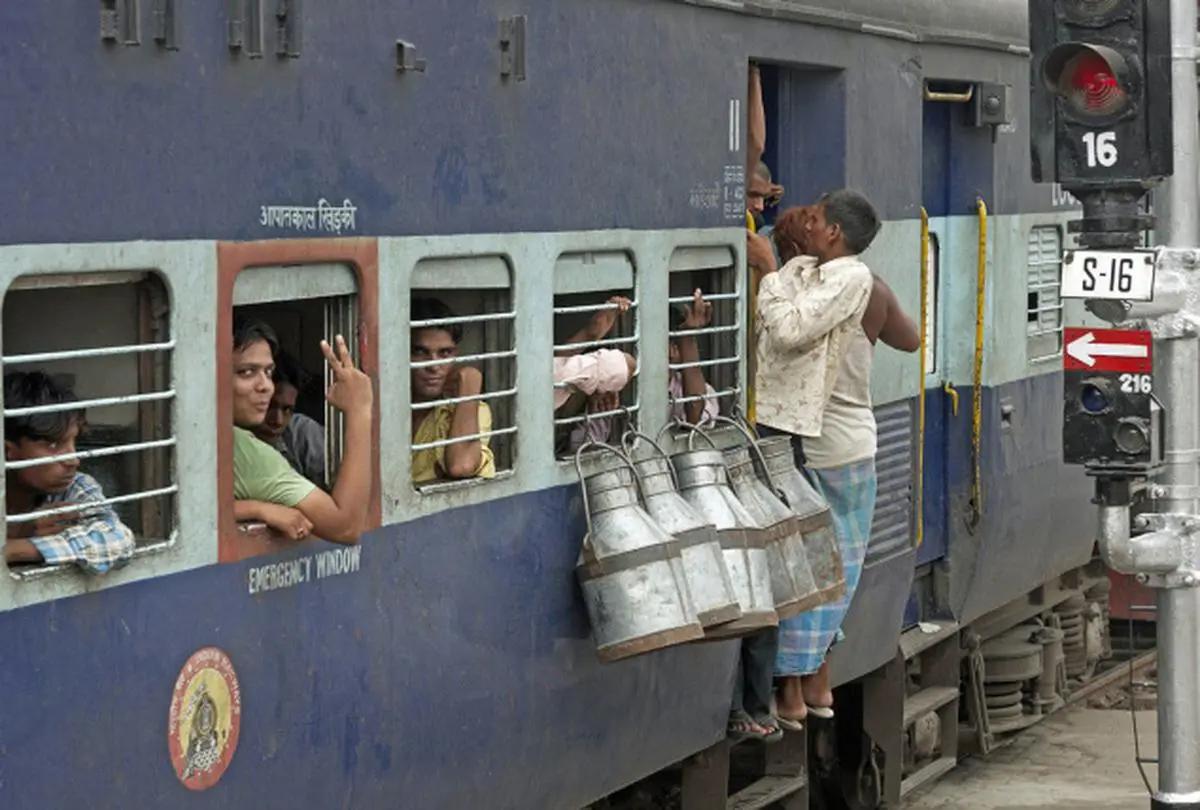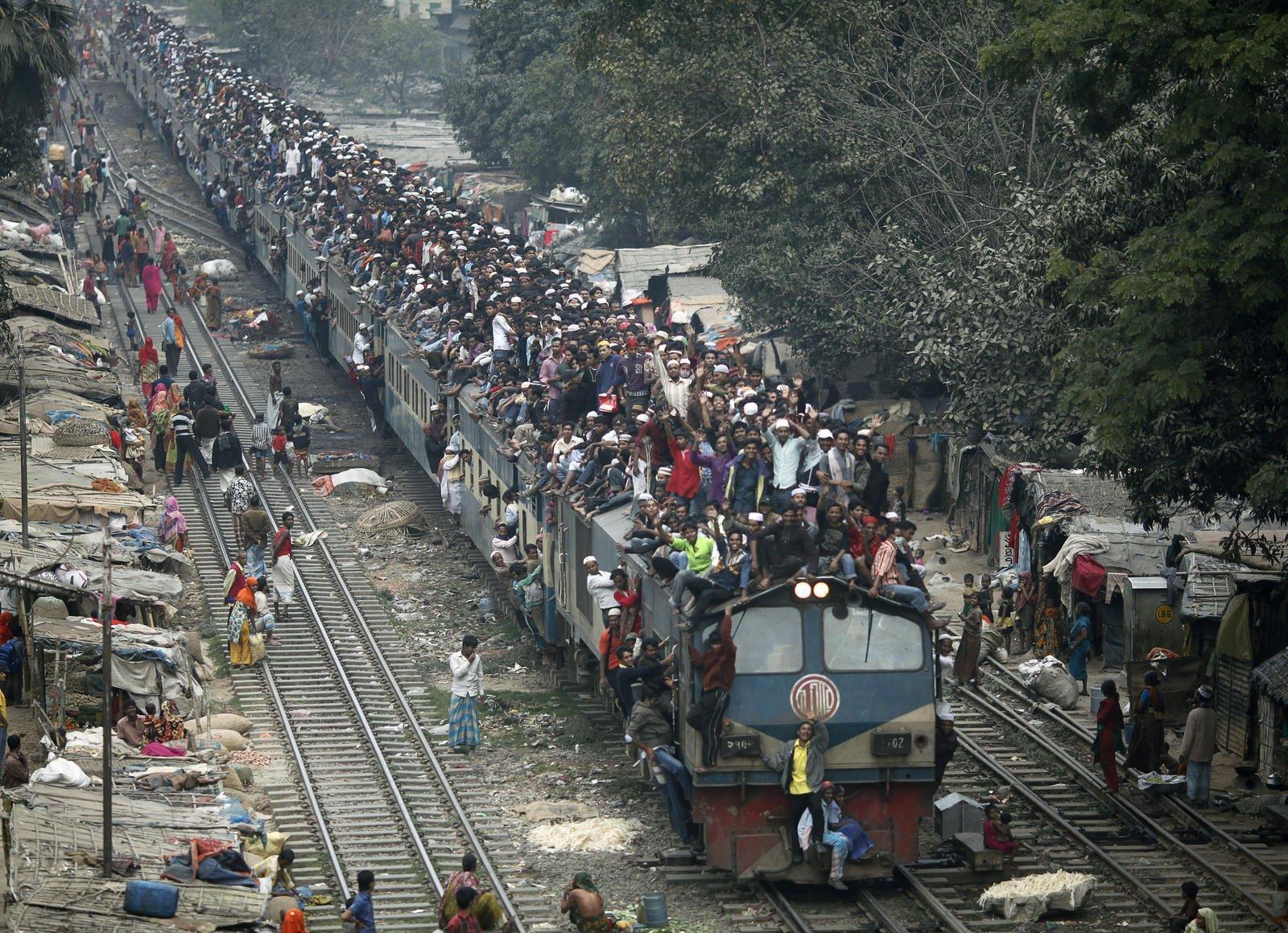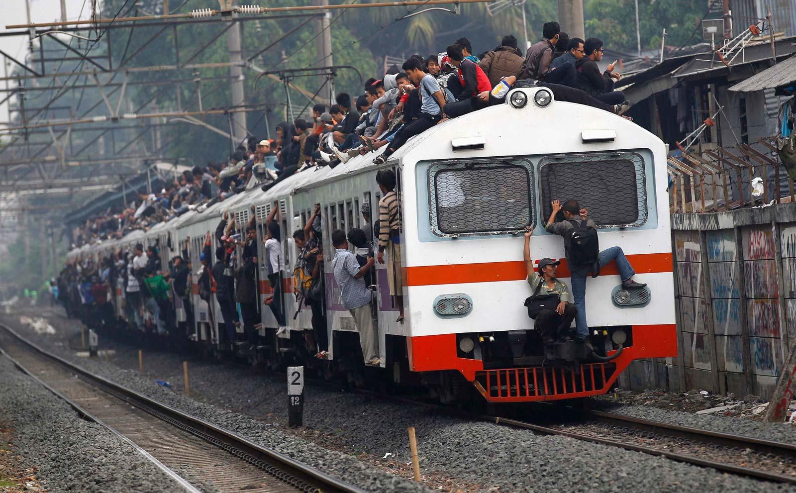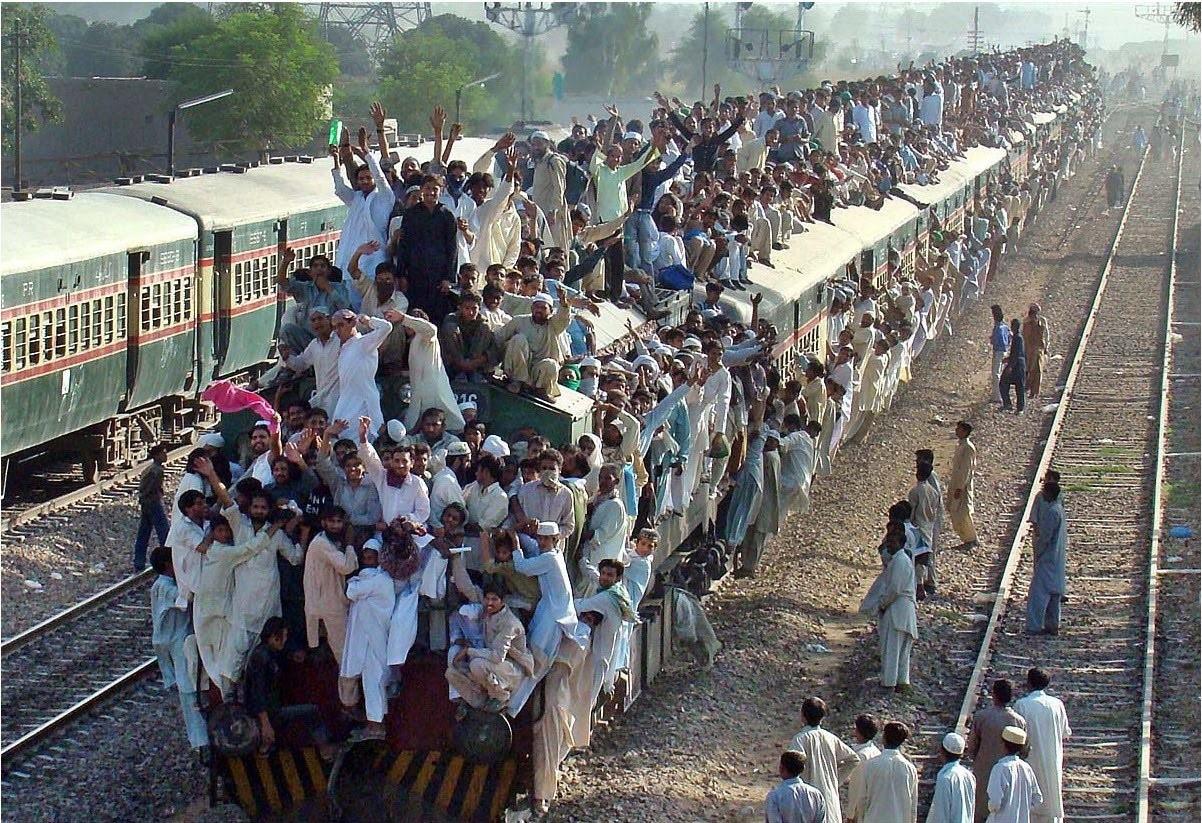 ![Поезда в Индии с людьми на крыше]()