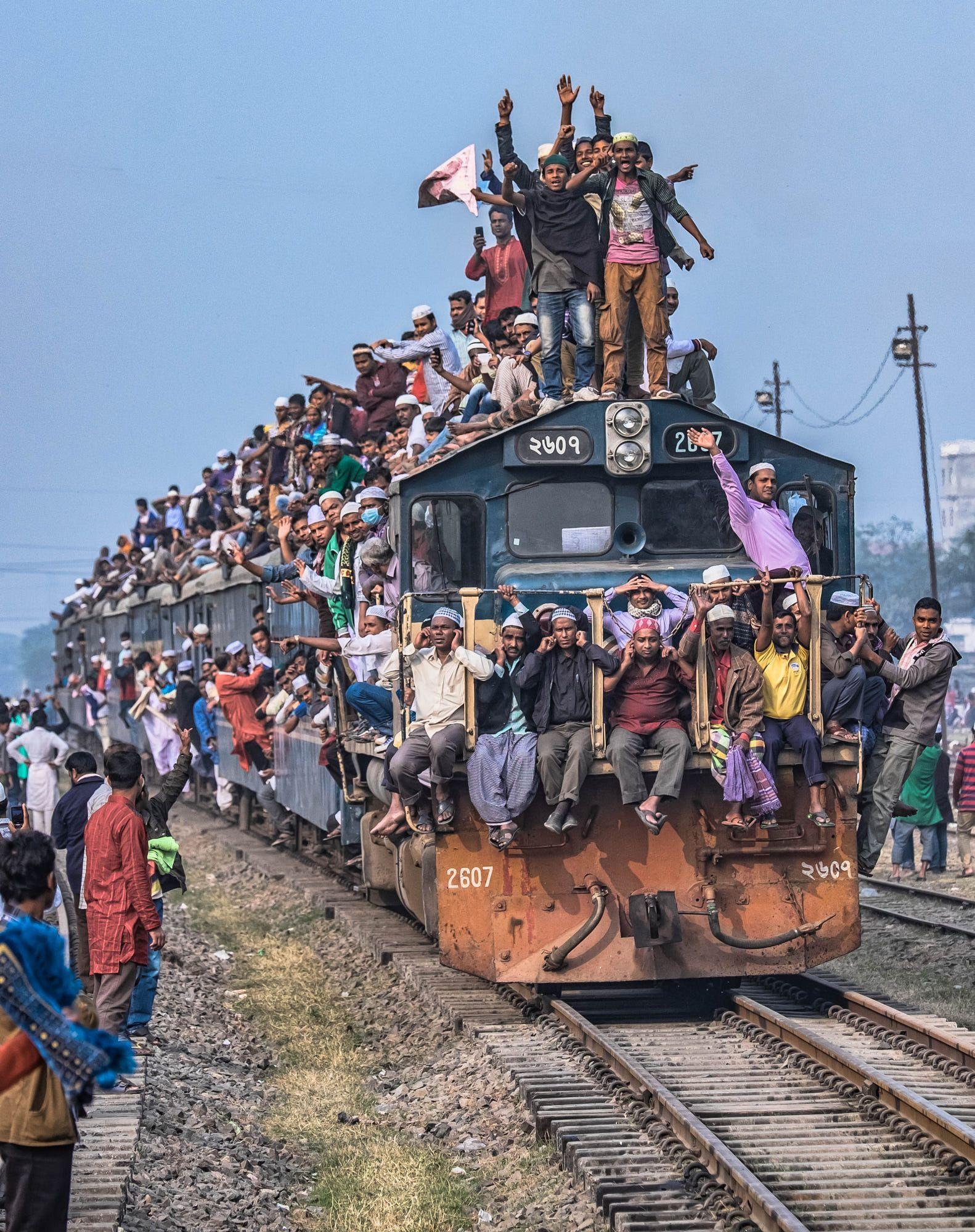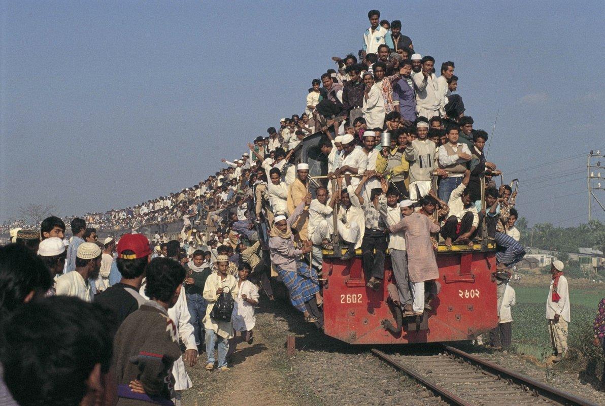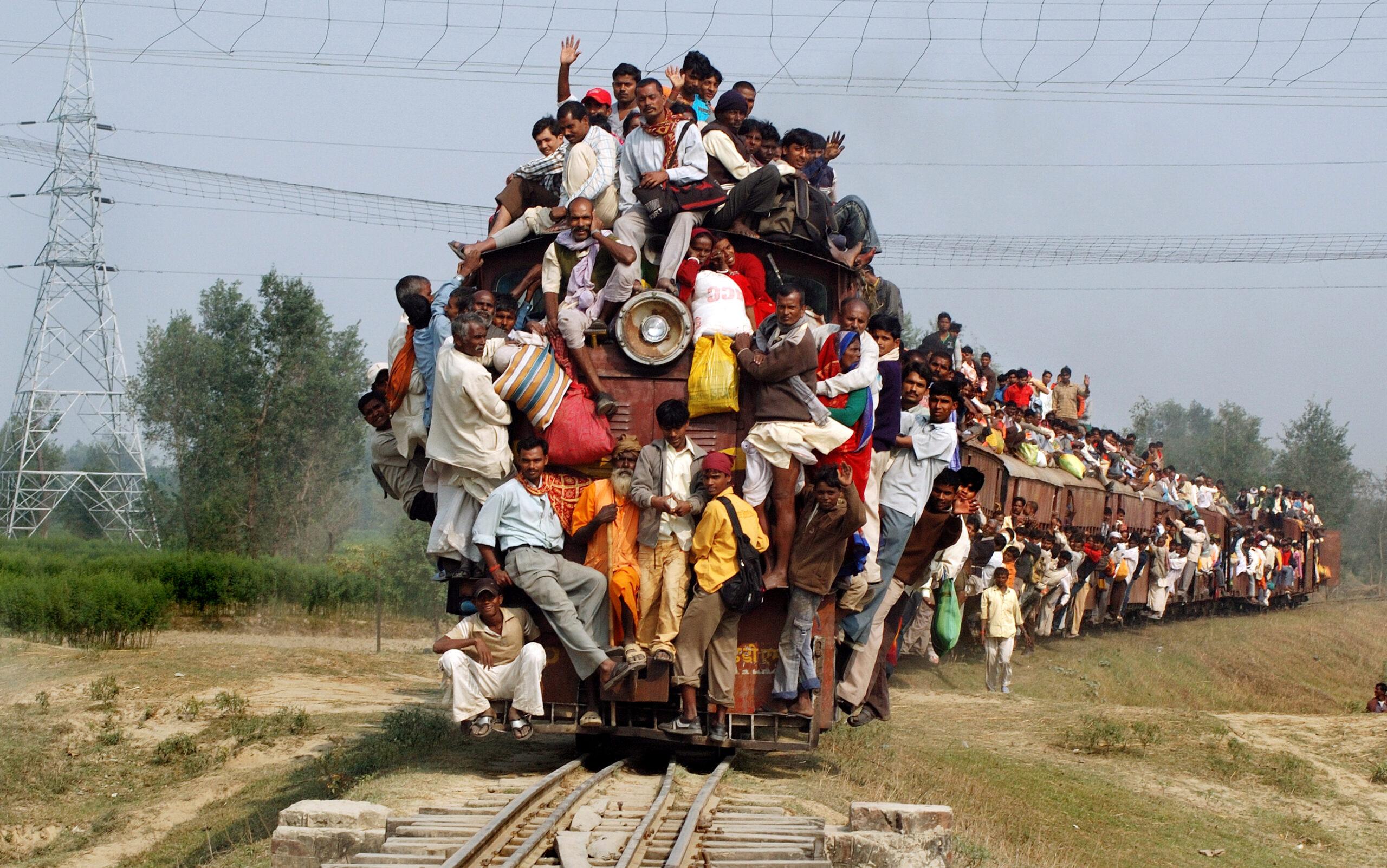 Фотография Поезда в Индии с людьми на крыше