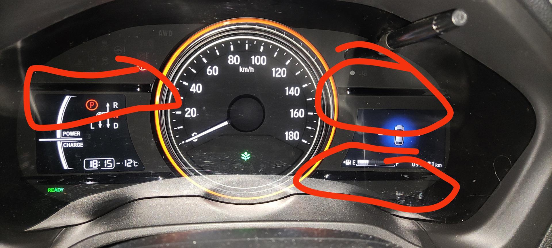 Хонда Везел гибрид значки на панели