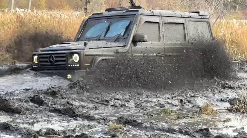Мерседес Гелендваген по грязи