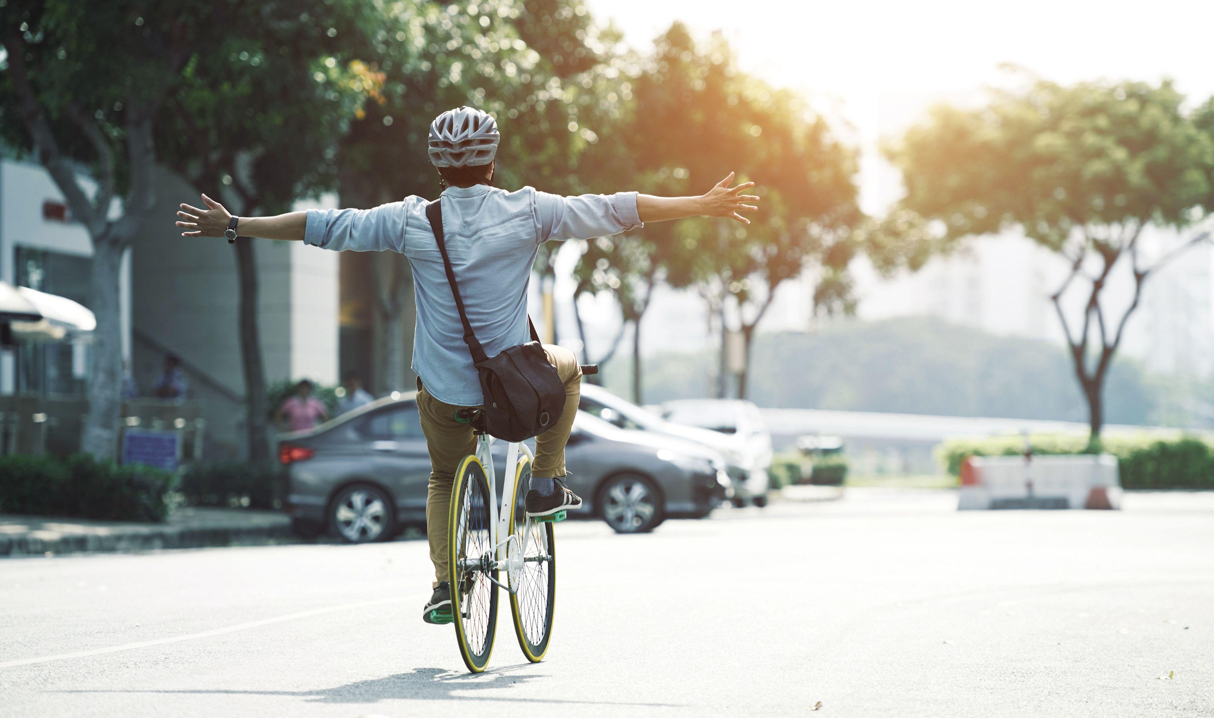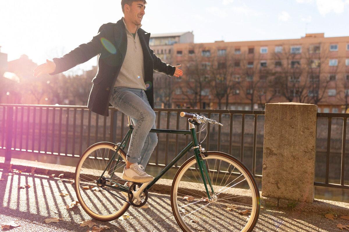 Радостный человек на велосипеде