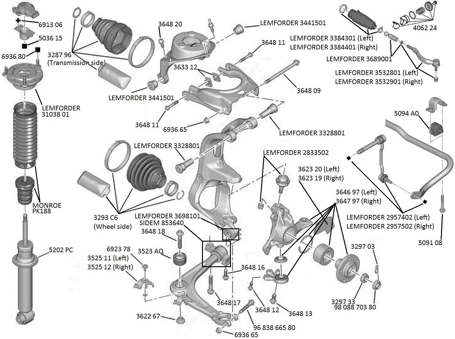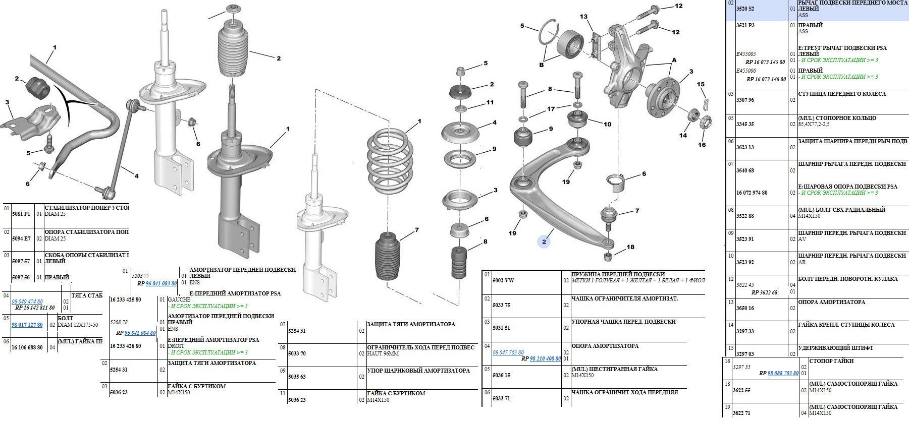 ![Пежо 408 передняя подвеска схема]()