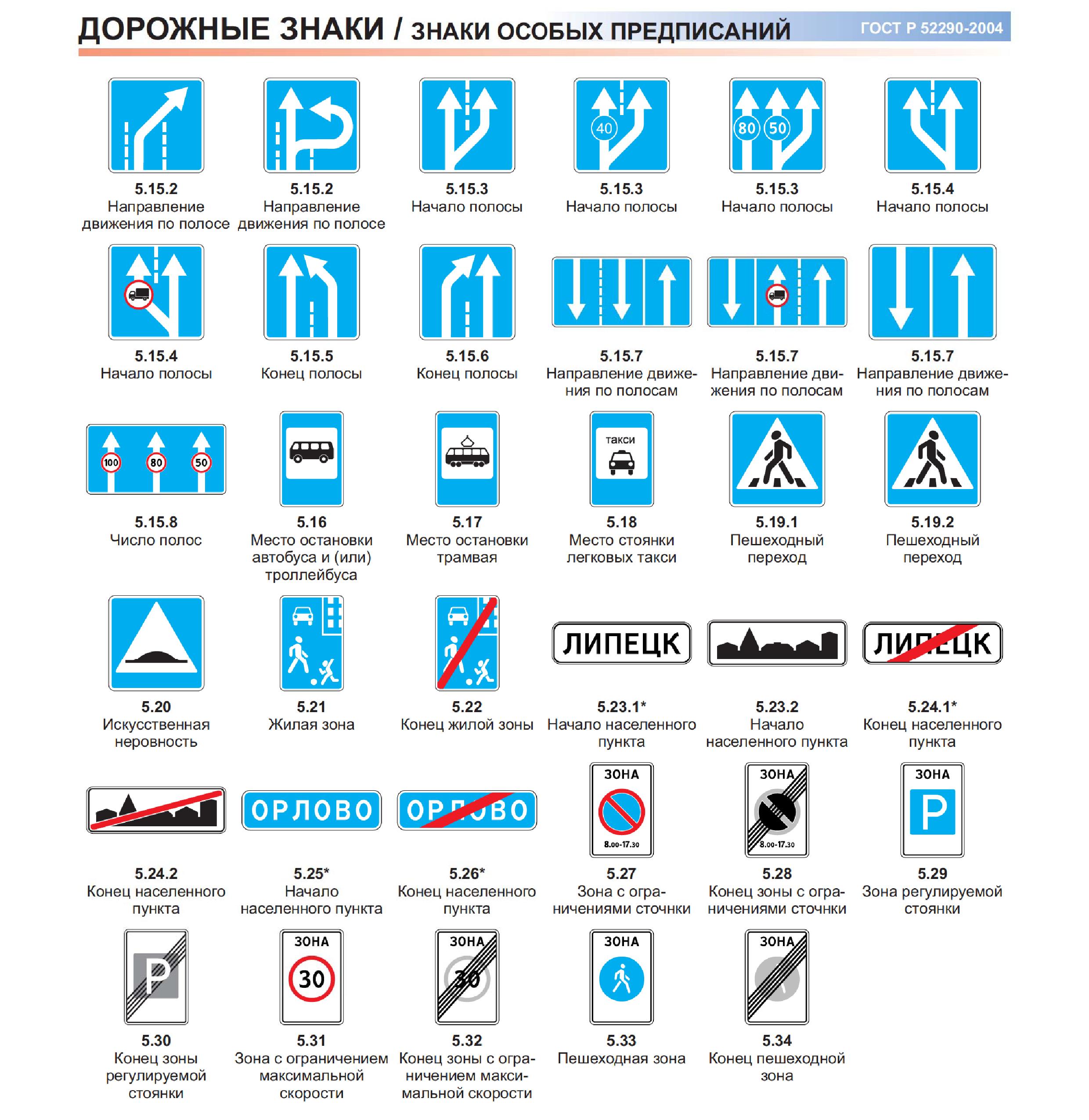Знаки дорожные по ГОСТ р52289-2004