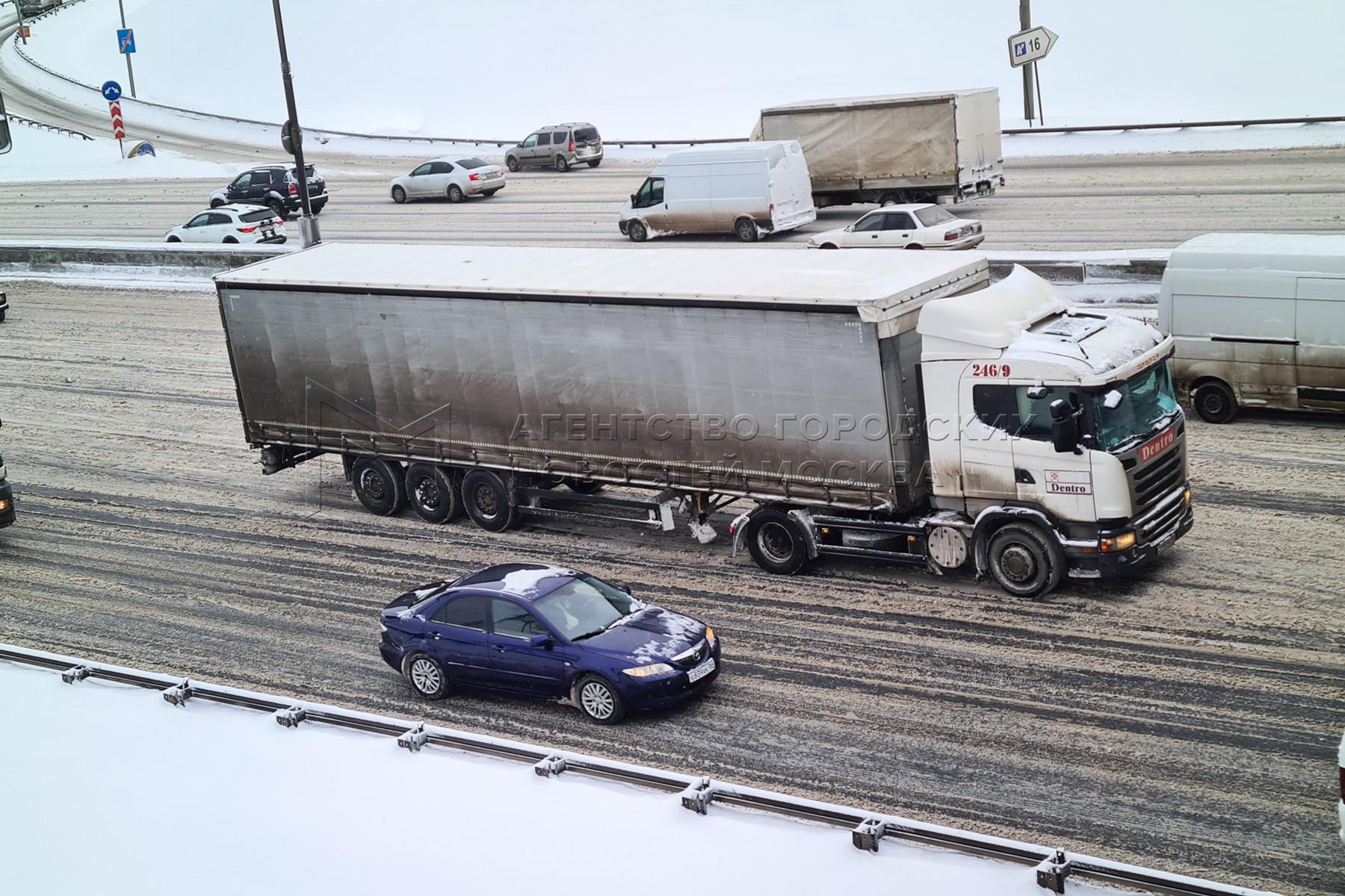 Запрет на въезд грузовиков снегопад