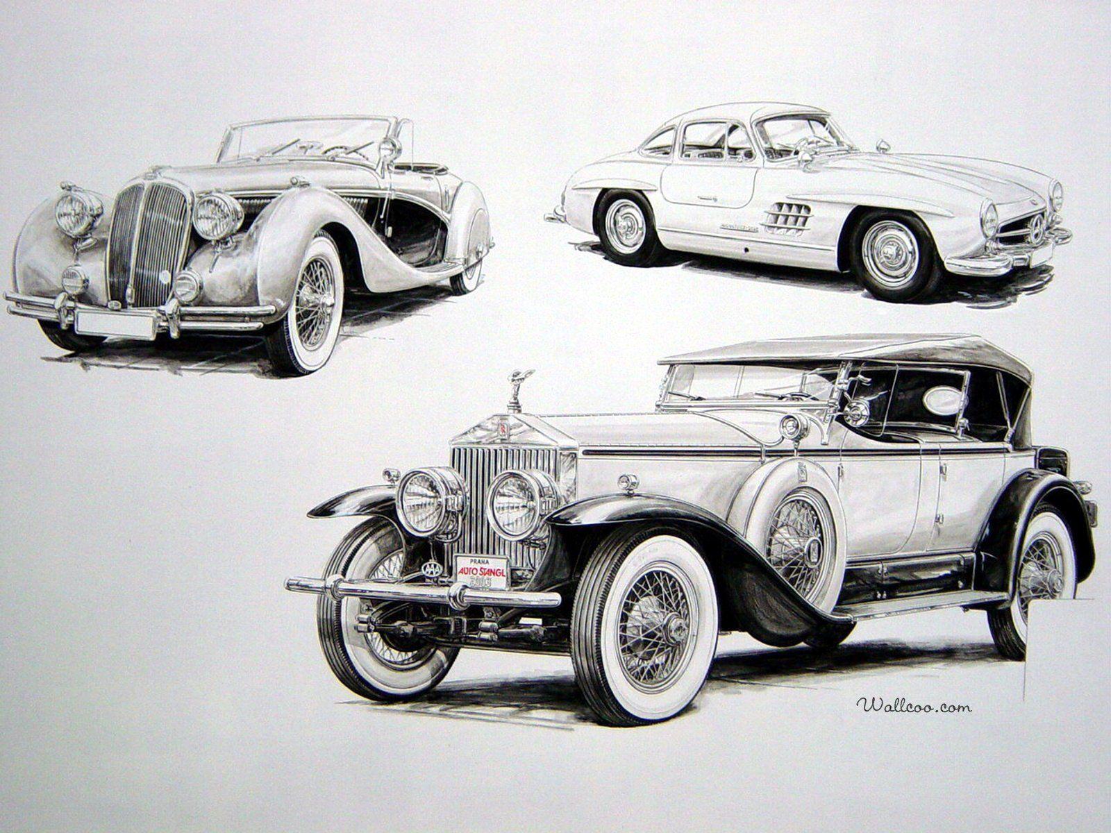 Фотография Рисунки ретро автомобилей художника Вацлава Западлика