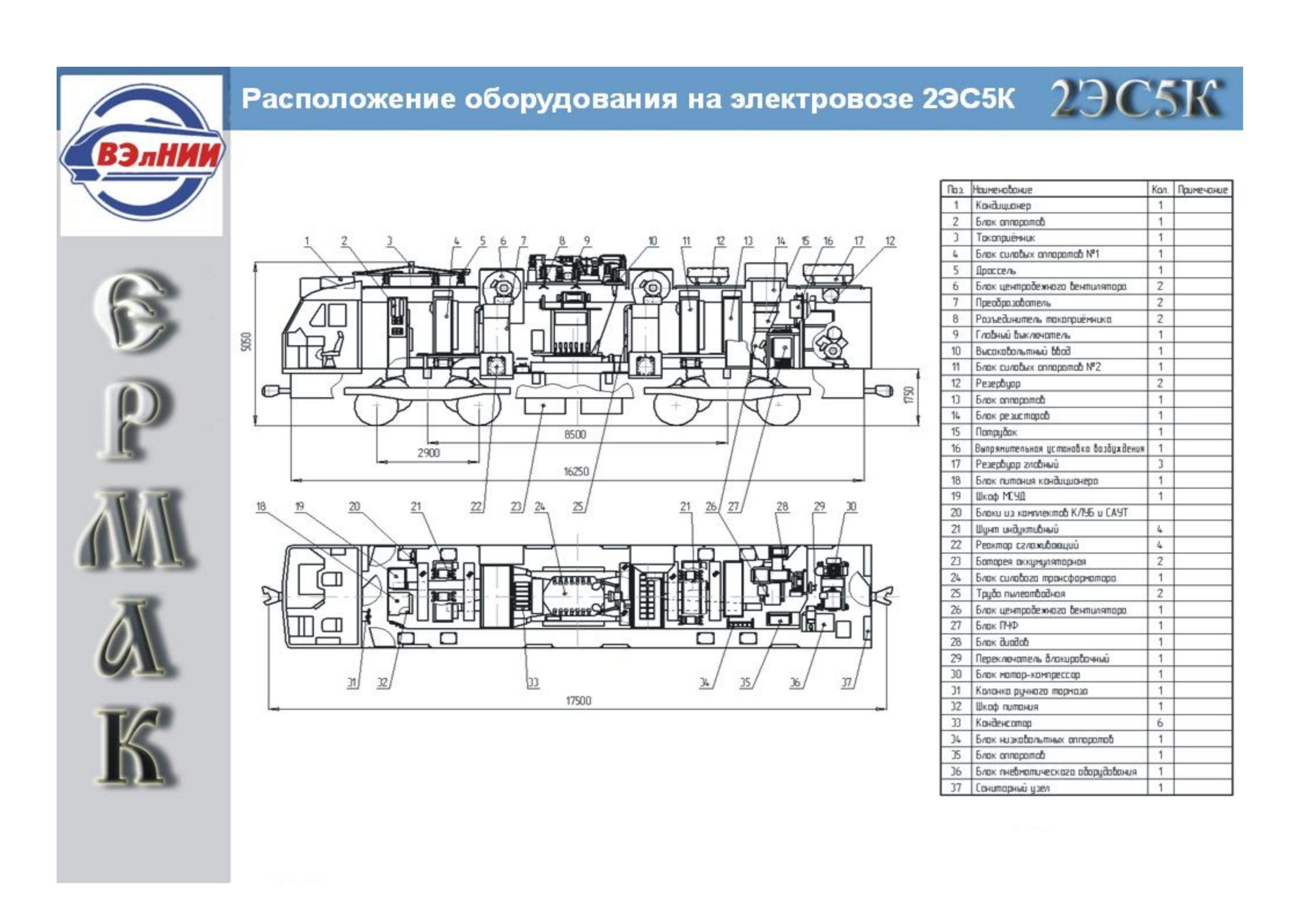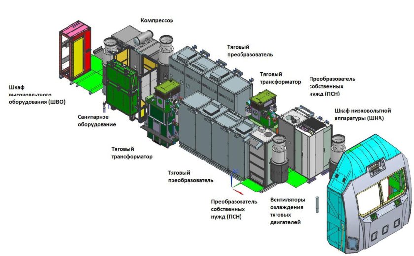 Расположение оборудования на электровозе эп20