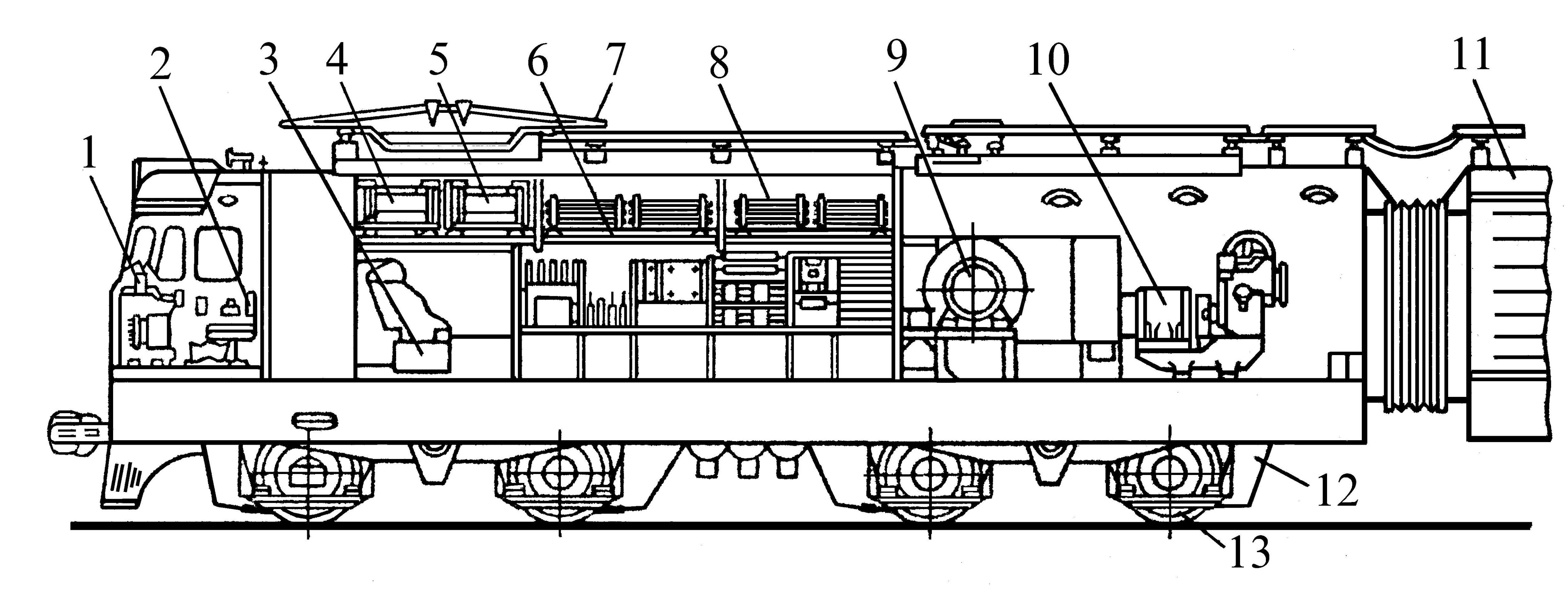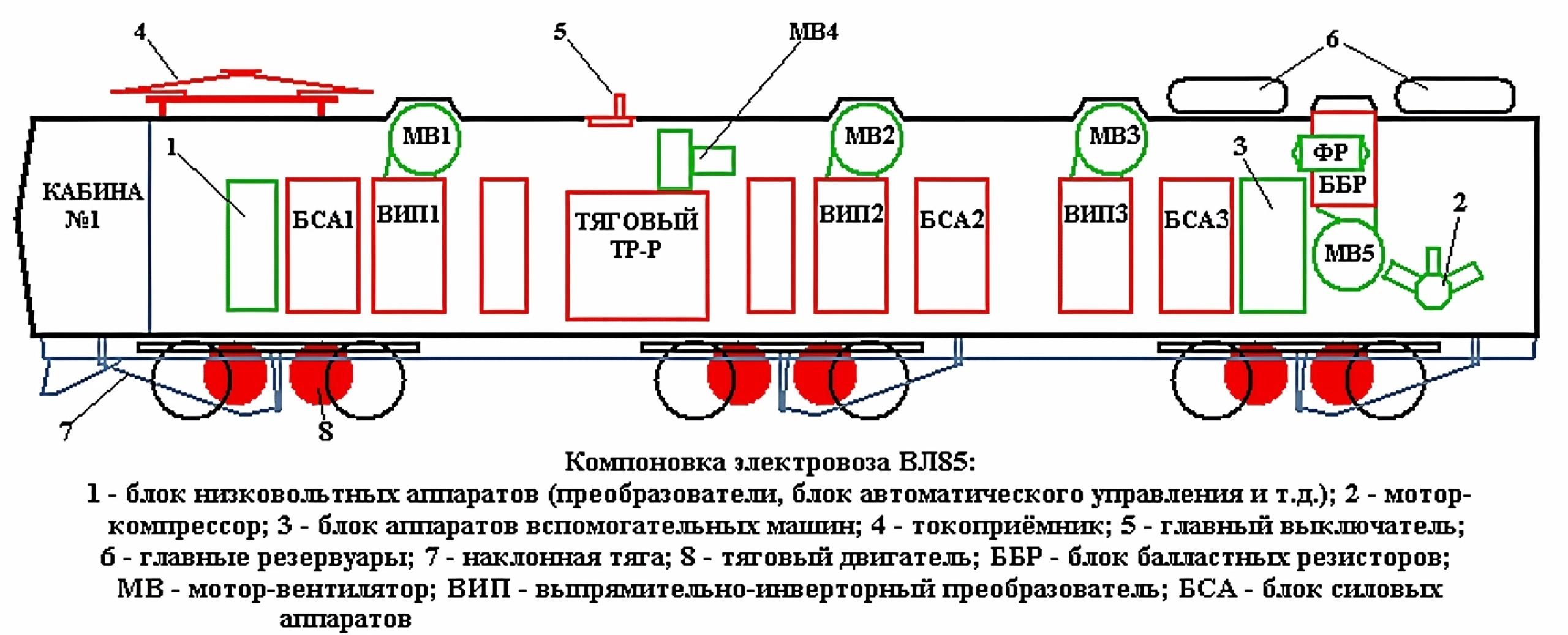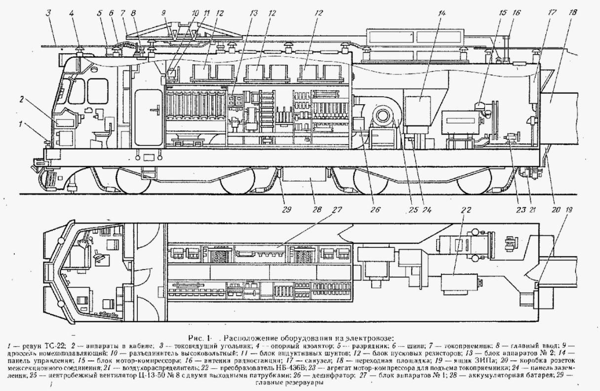 Расположение оборудования на электровозе вл10