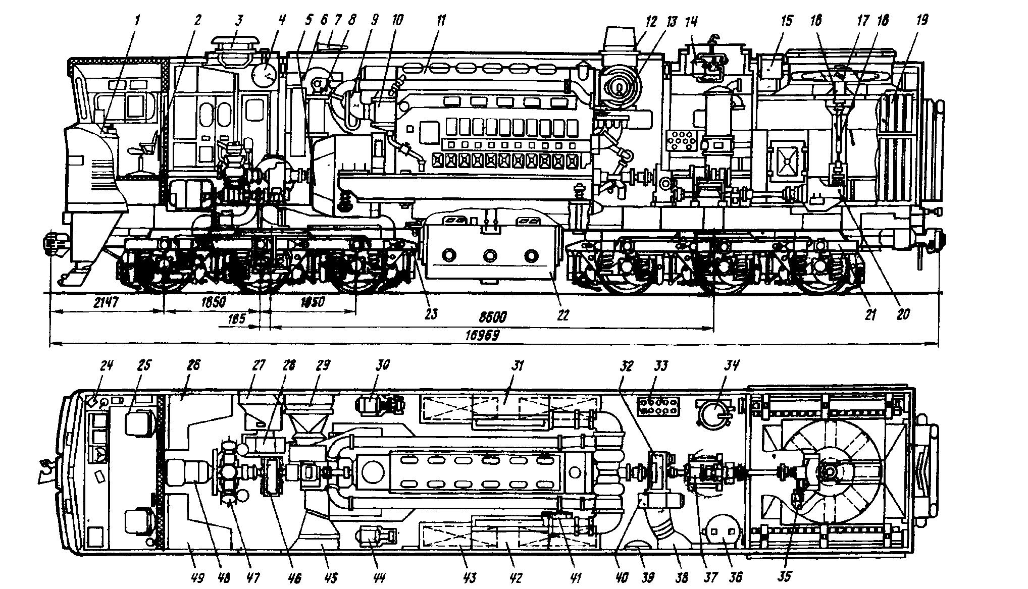 Компоновочная схема тепловоза 2тэ10м