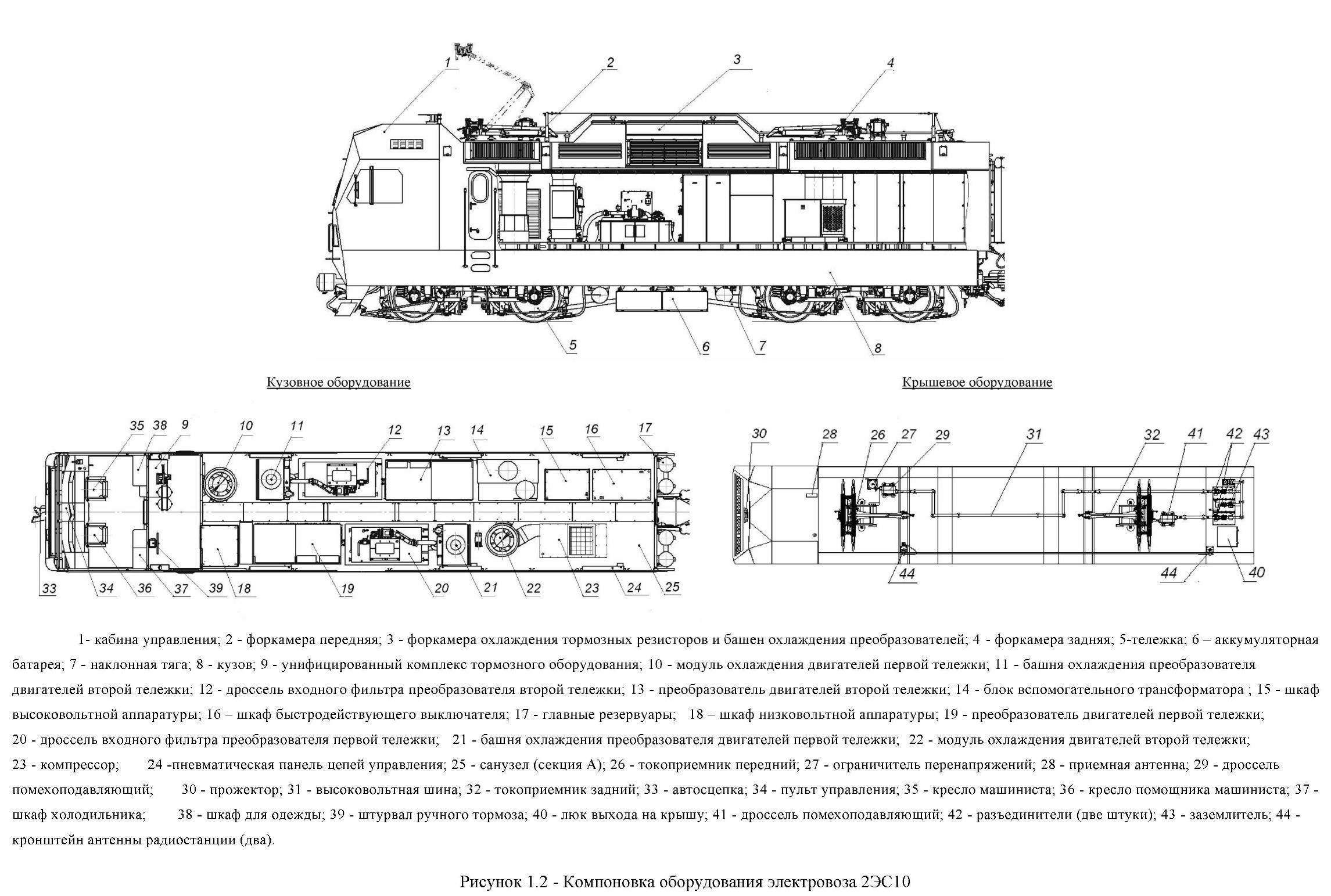 Расположение оборудования на тепловозе 2тэ10м
