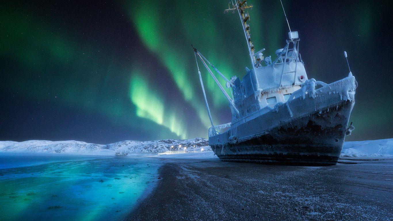 Кладбище кораблей Териберка Северное сияние