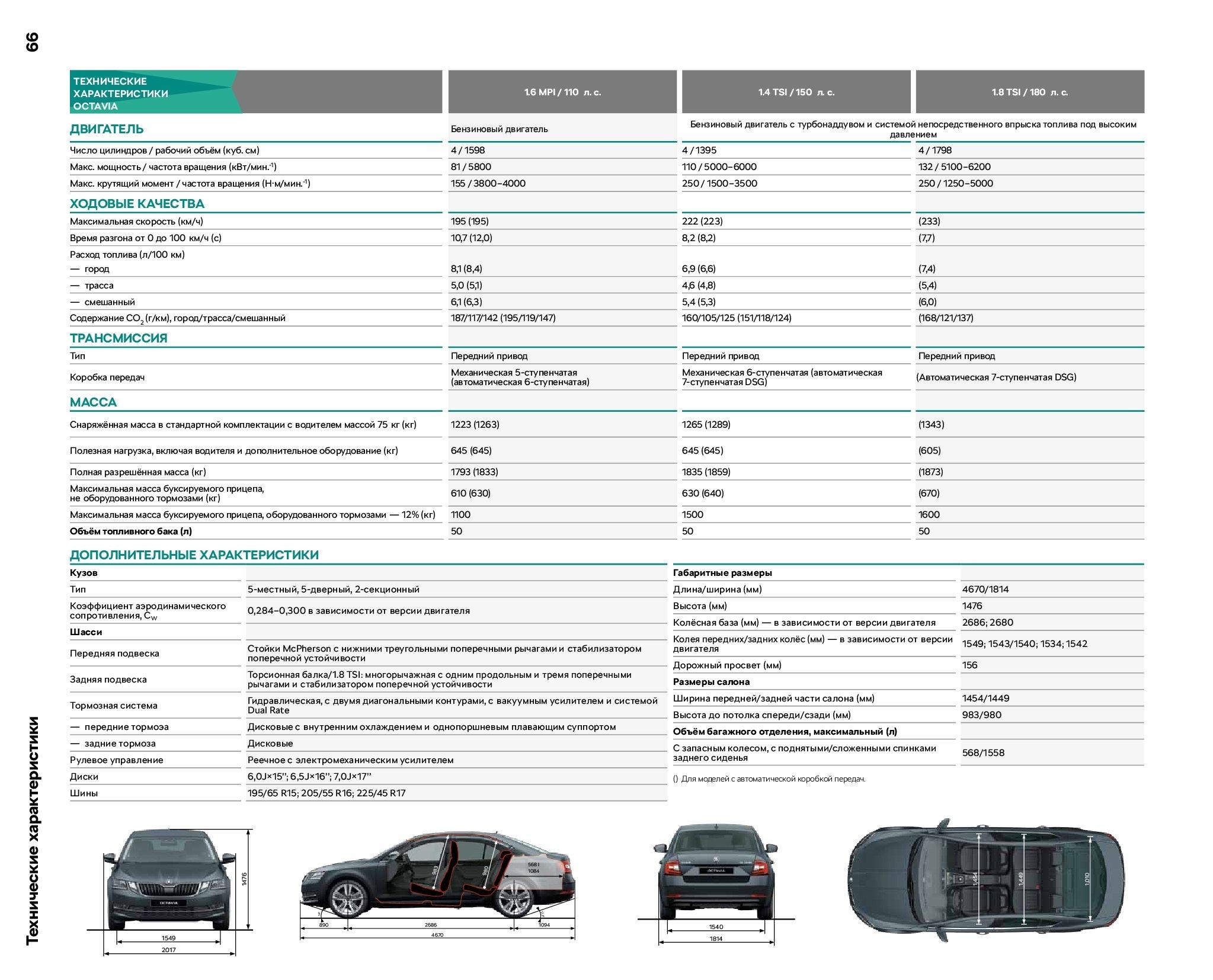 Шкода Октавия технические характеристики