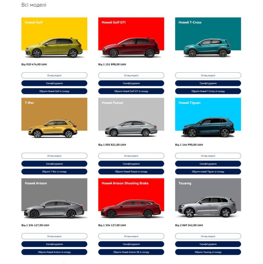 Модельный ряд Фольксваген 2022
