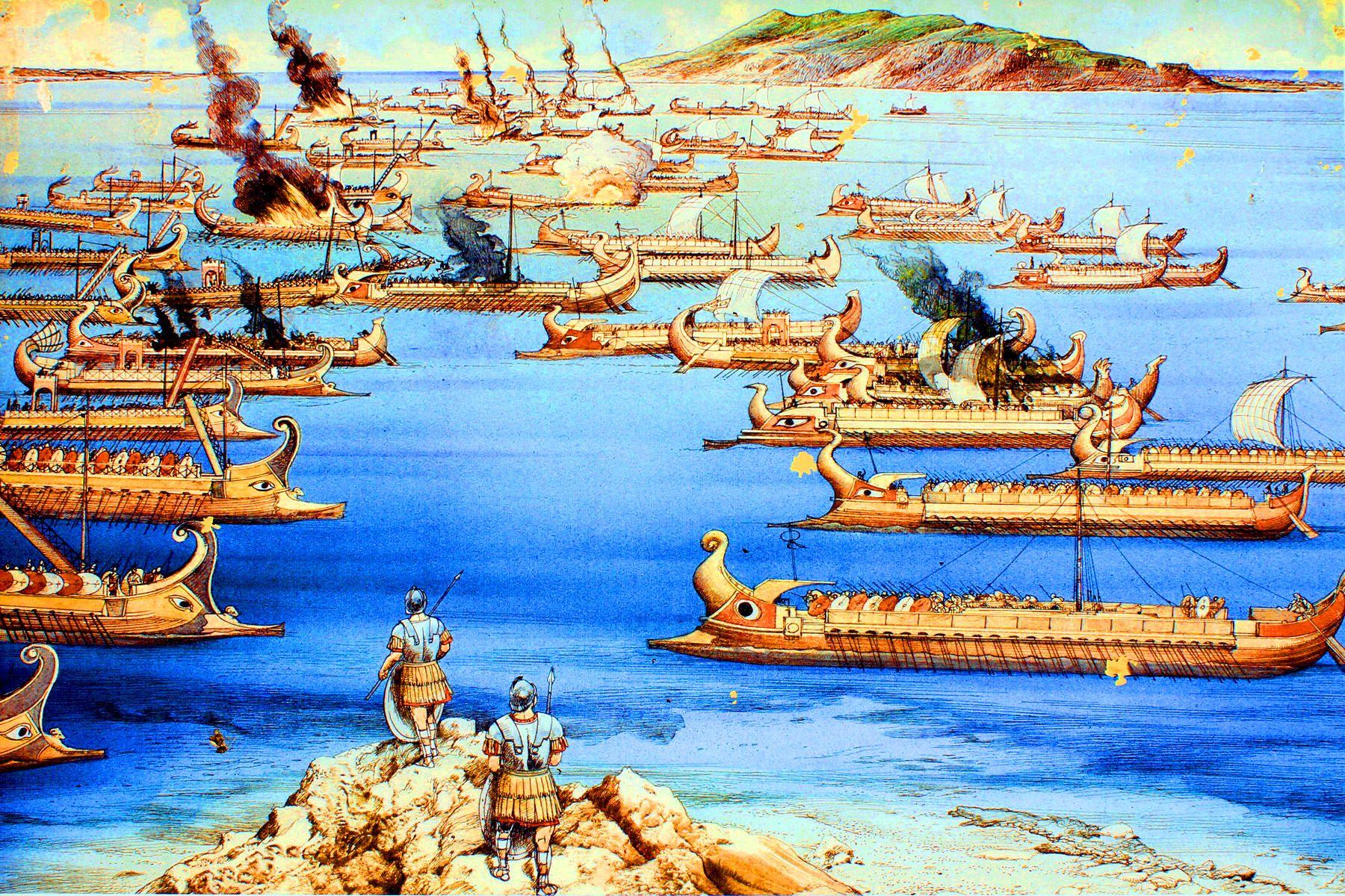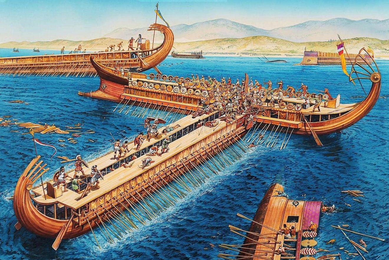 ![Саламинское сражение в древней Греции]()
