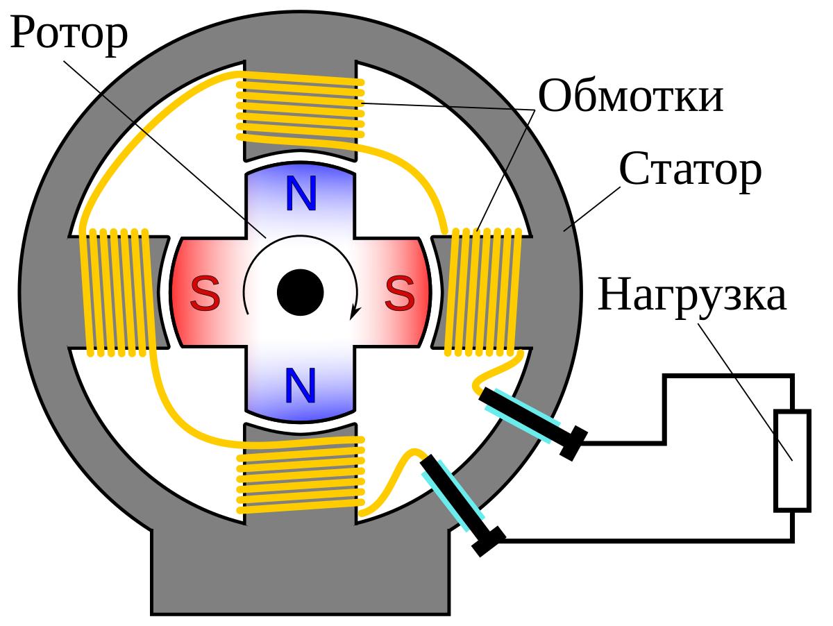 Схема работы электрогенератора переменного тока