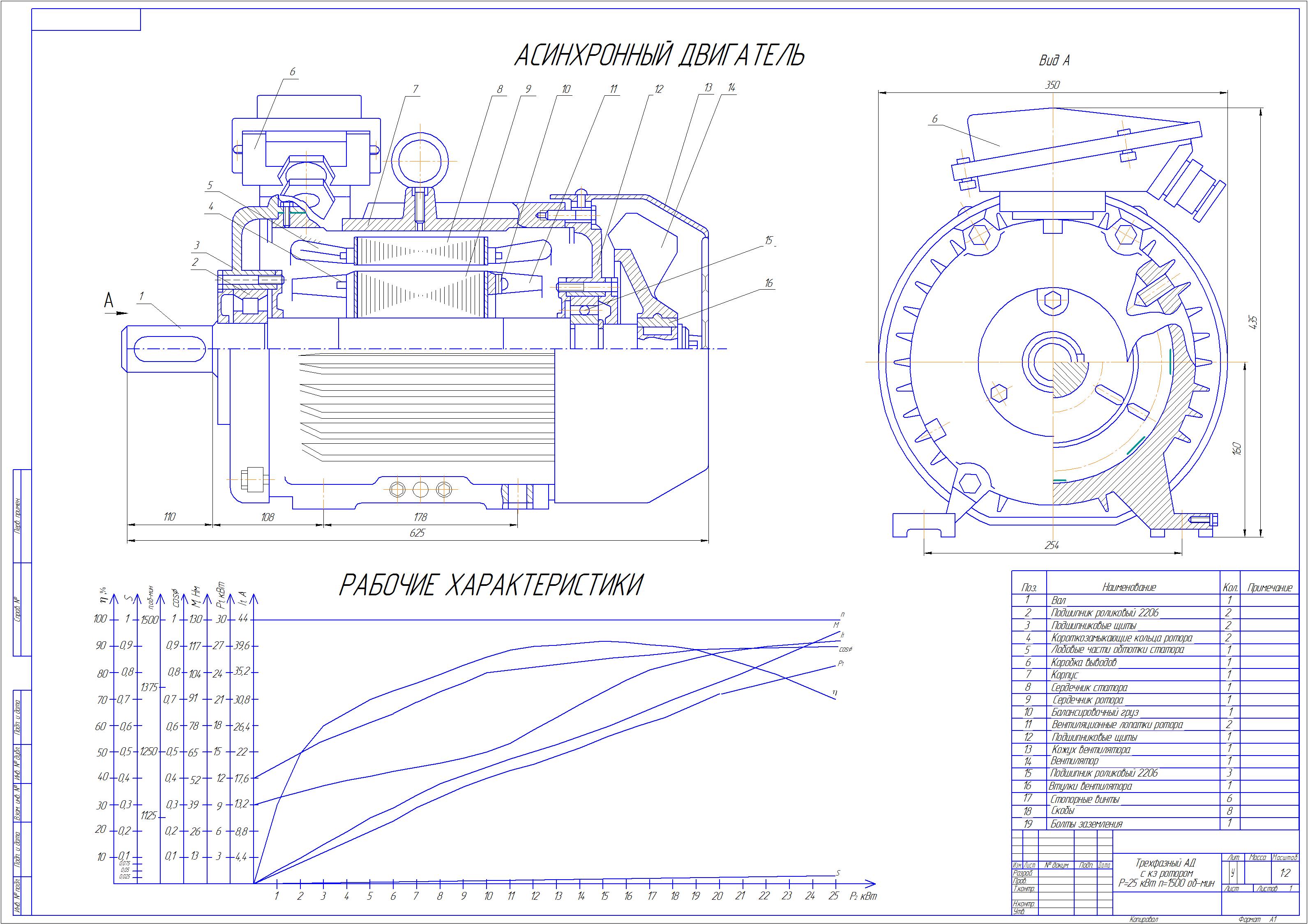 Чертеж асинхронного двигателя с короткозамкнутым ротором