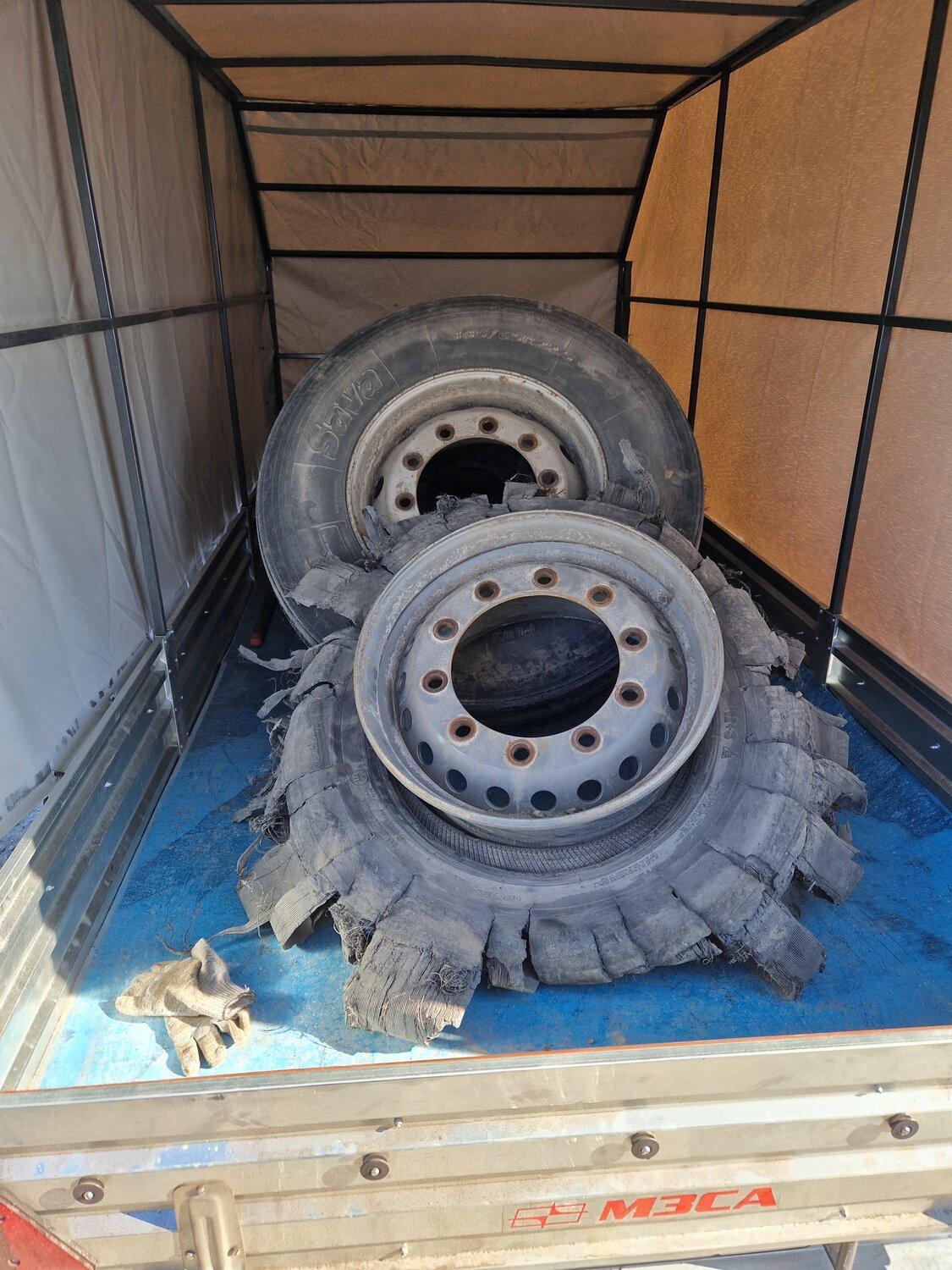 Взорванное колесо прицепа Тонар