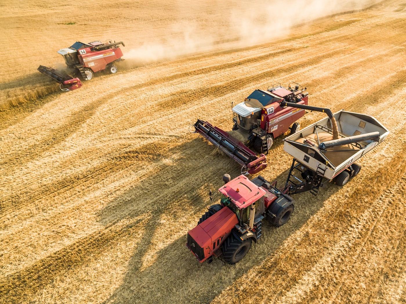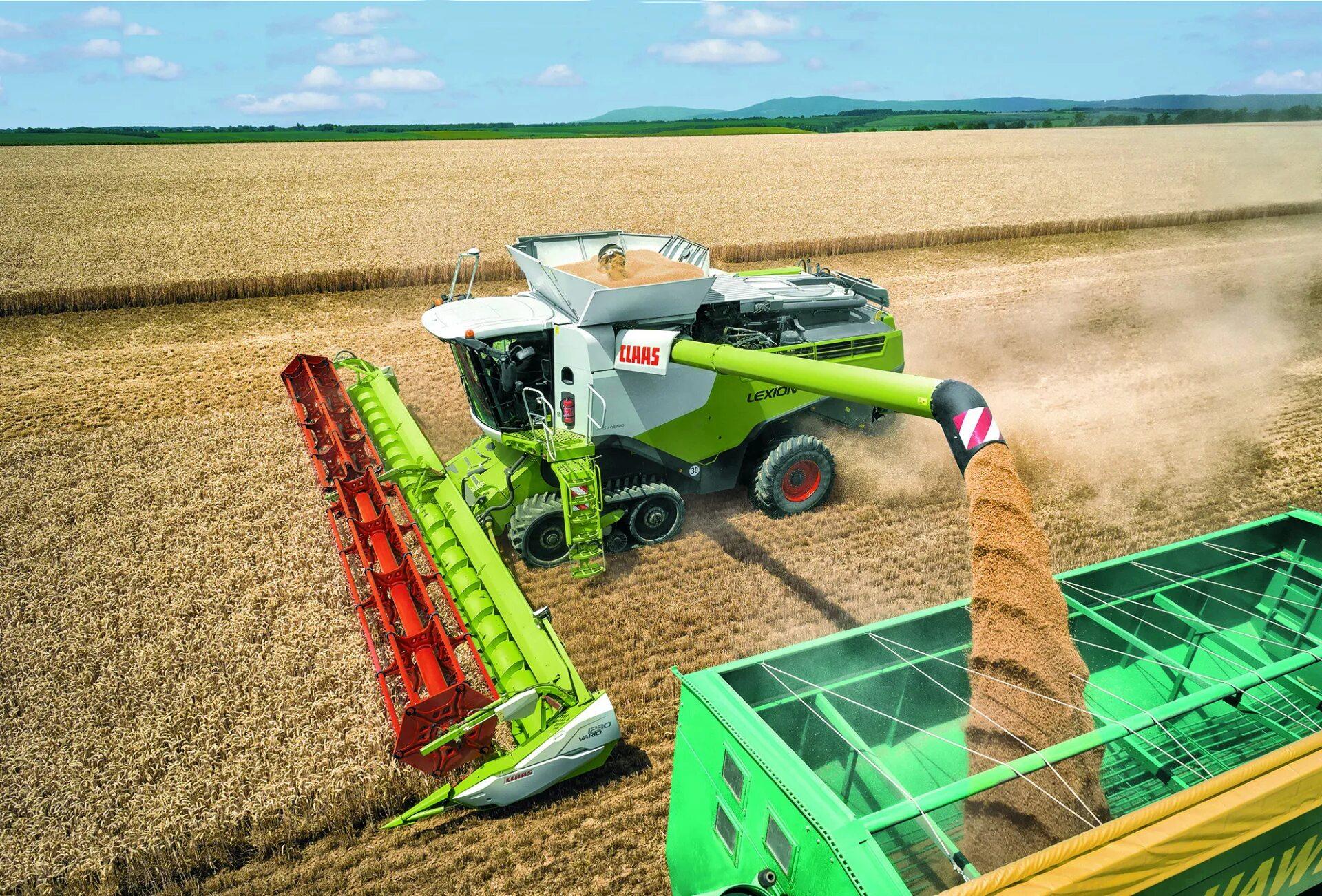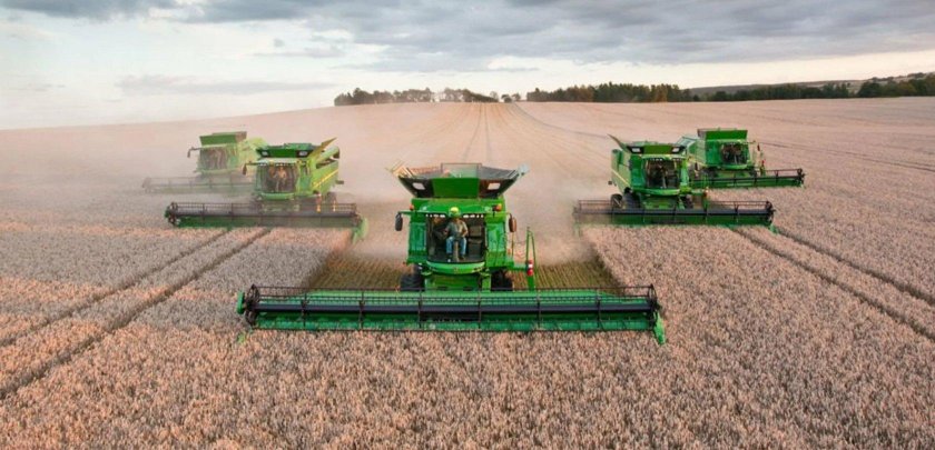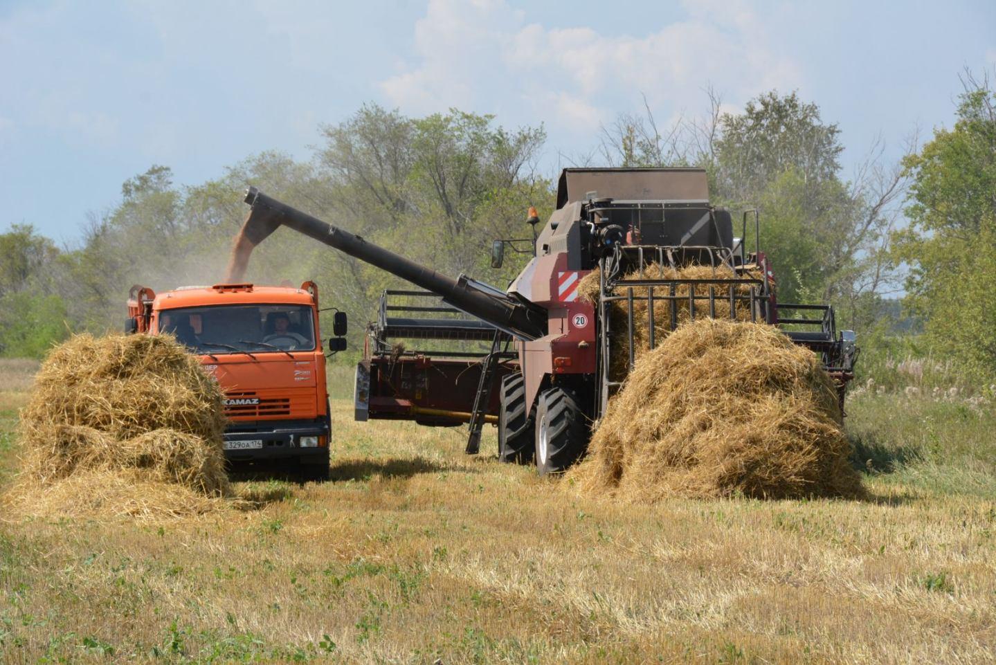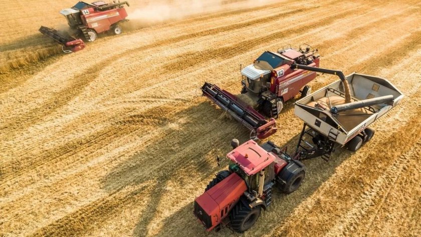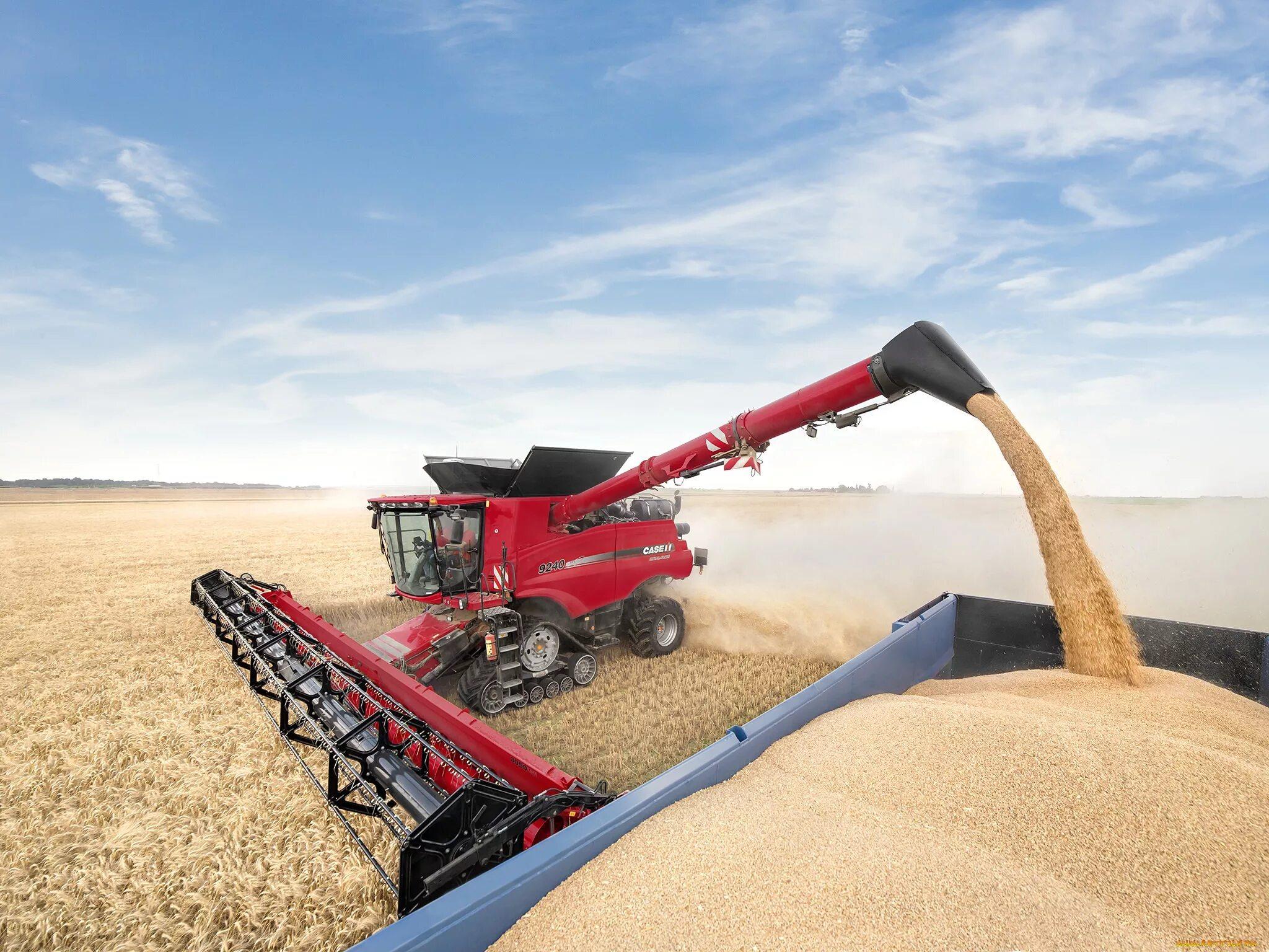 ![Уборка урожая комбайнами]()