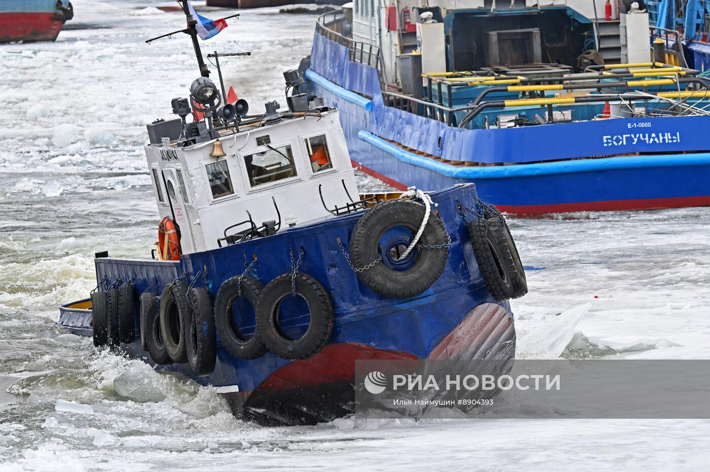 Атомный ледокол на Енисее