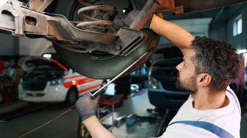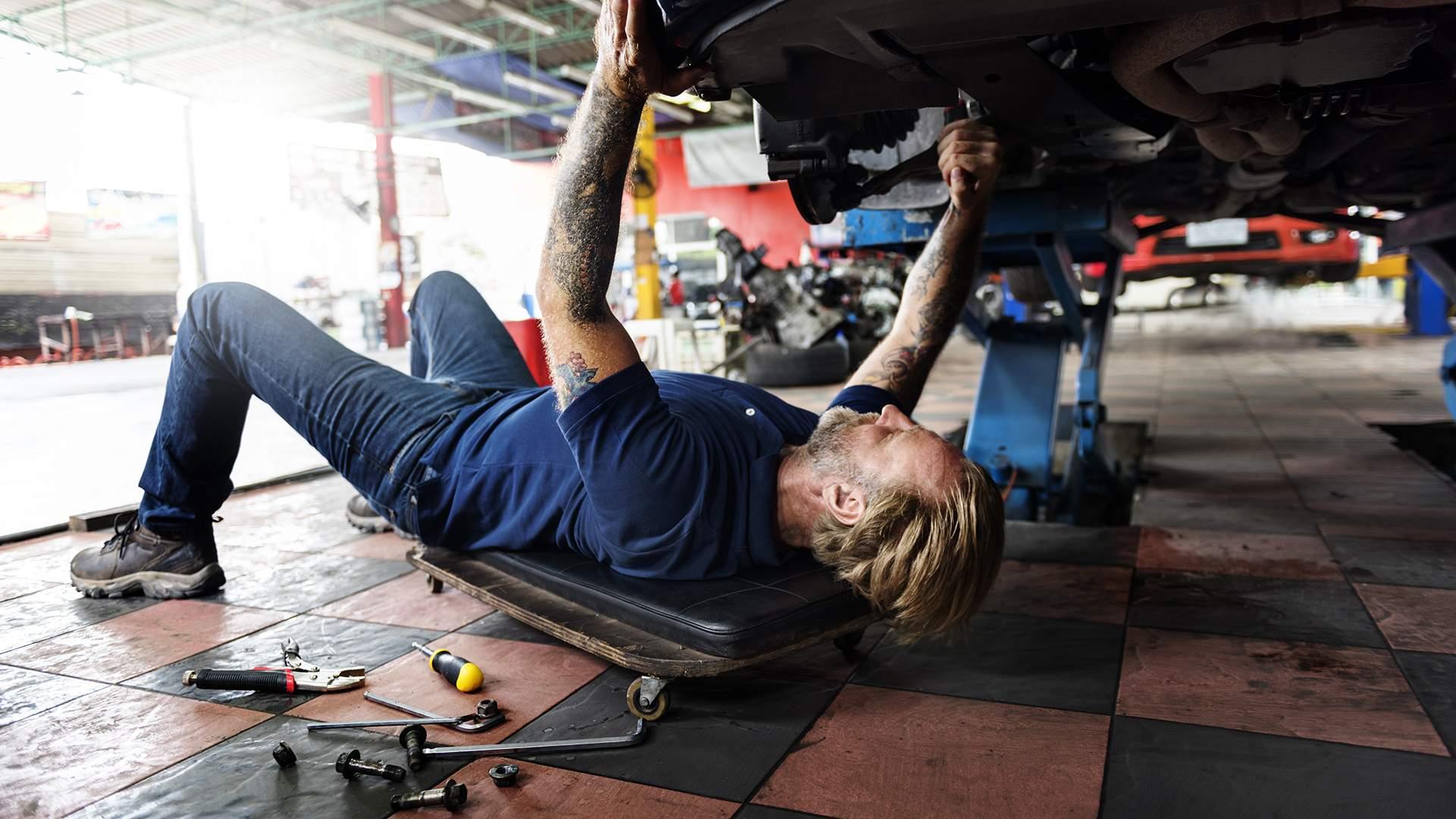 Автомеханик под машиной