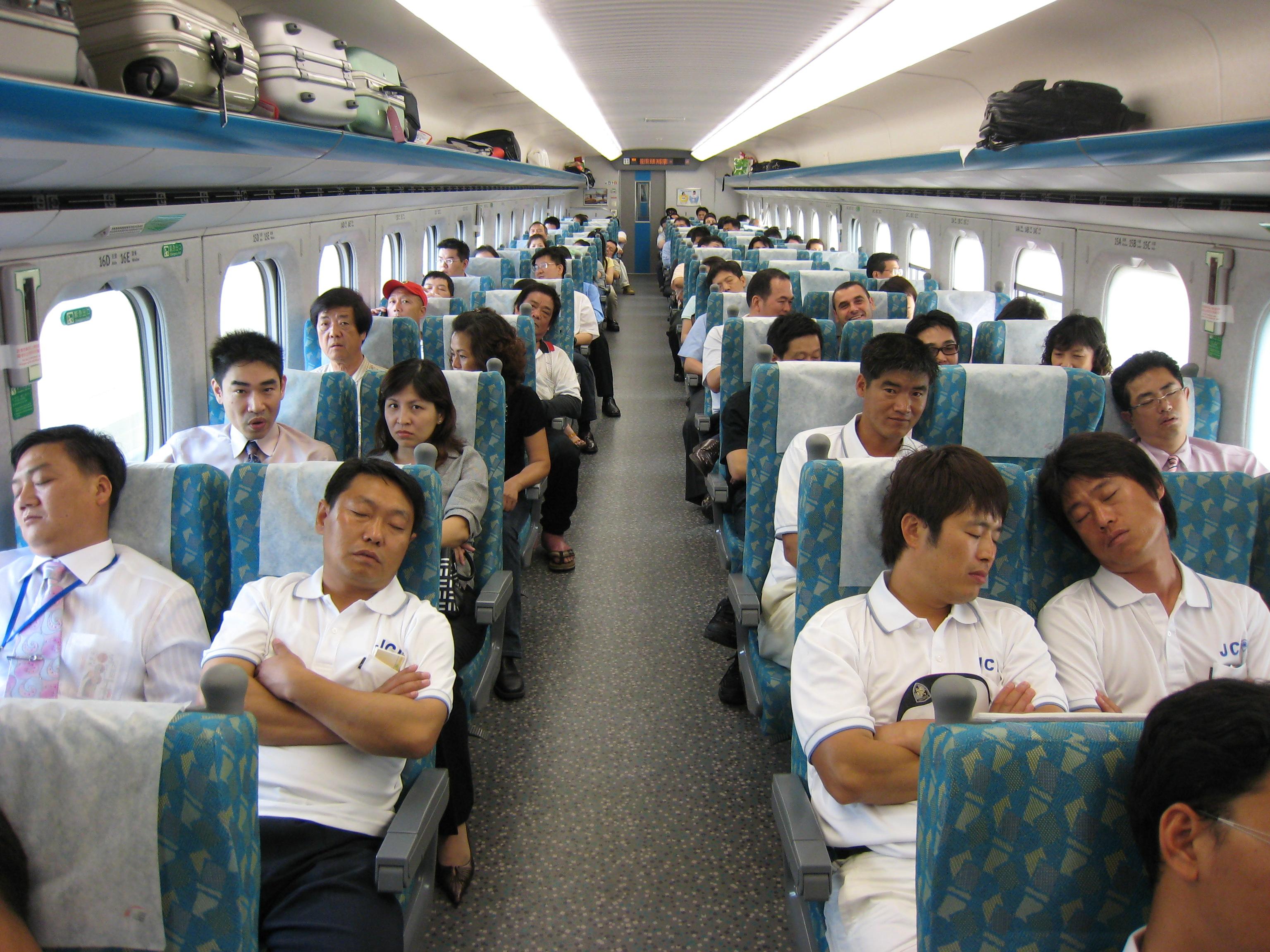Поезд Синкансэн в Японии внутри