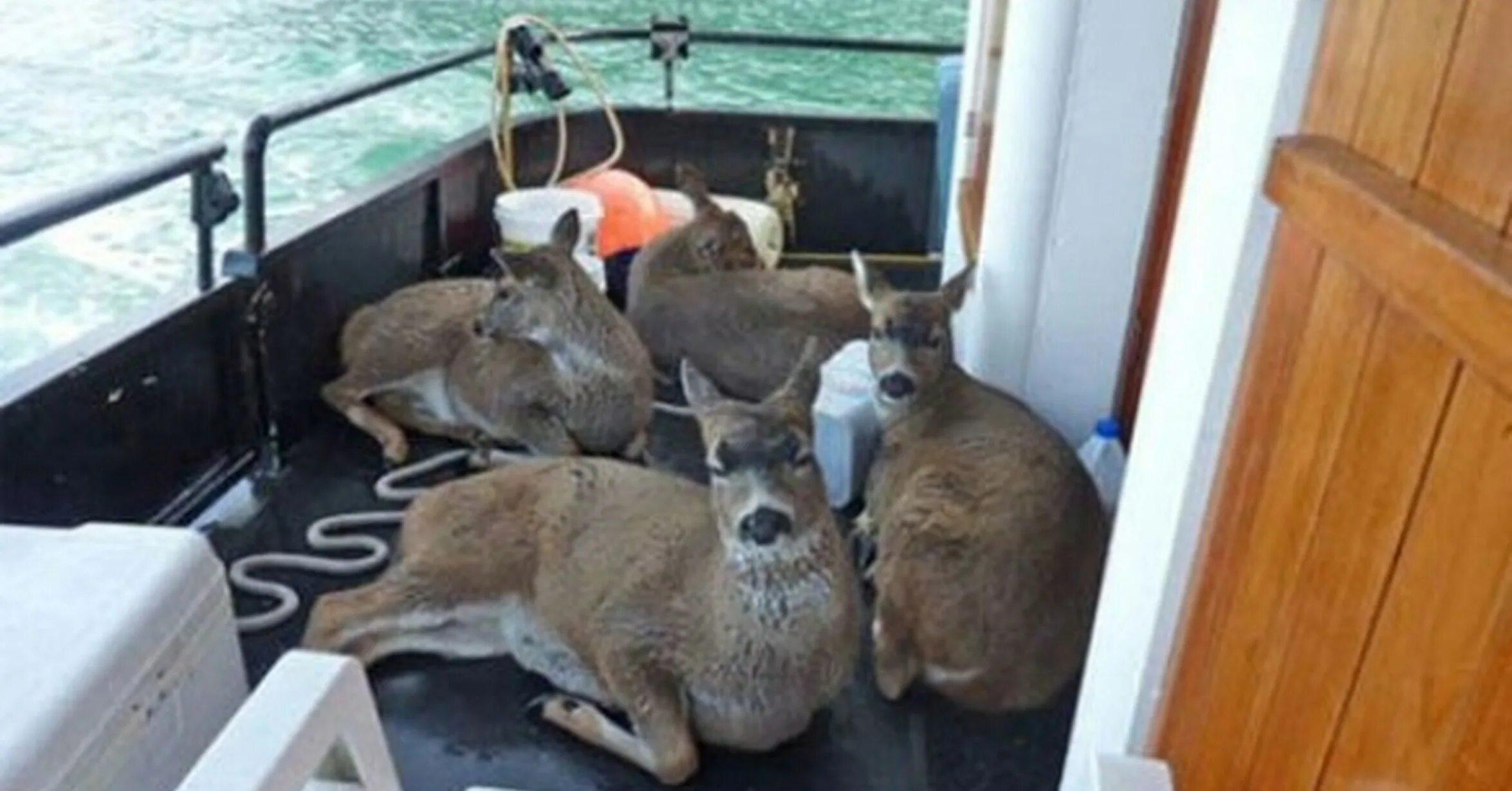 Олени плавают