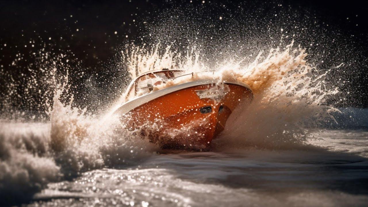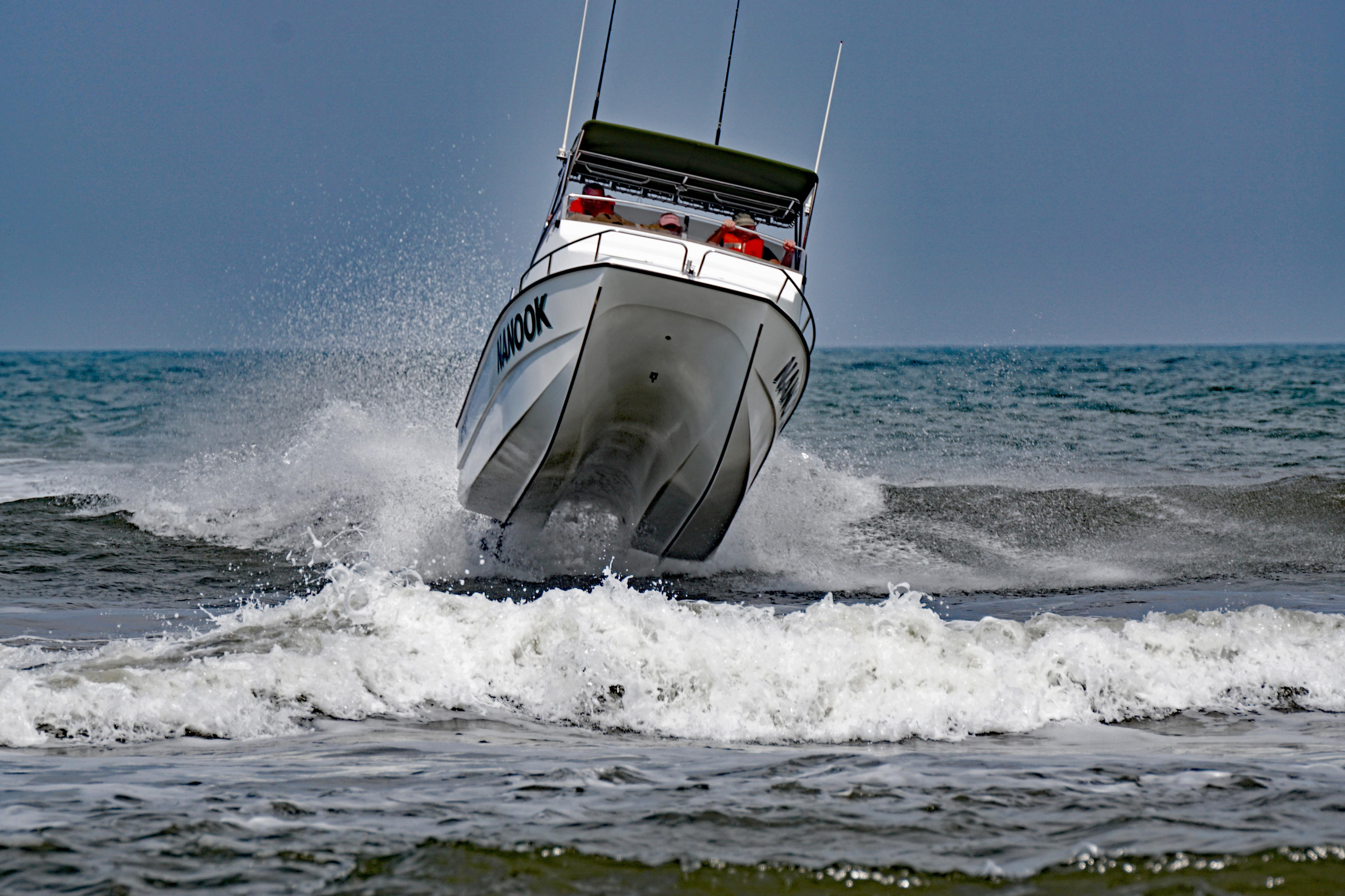 Катер прыгает по волнам