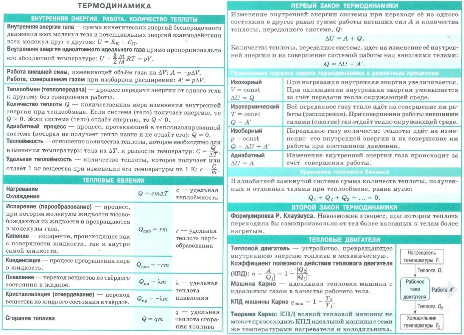 Термодинамика физика 10 класс формулы