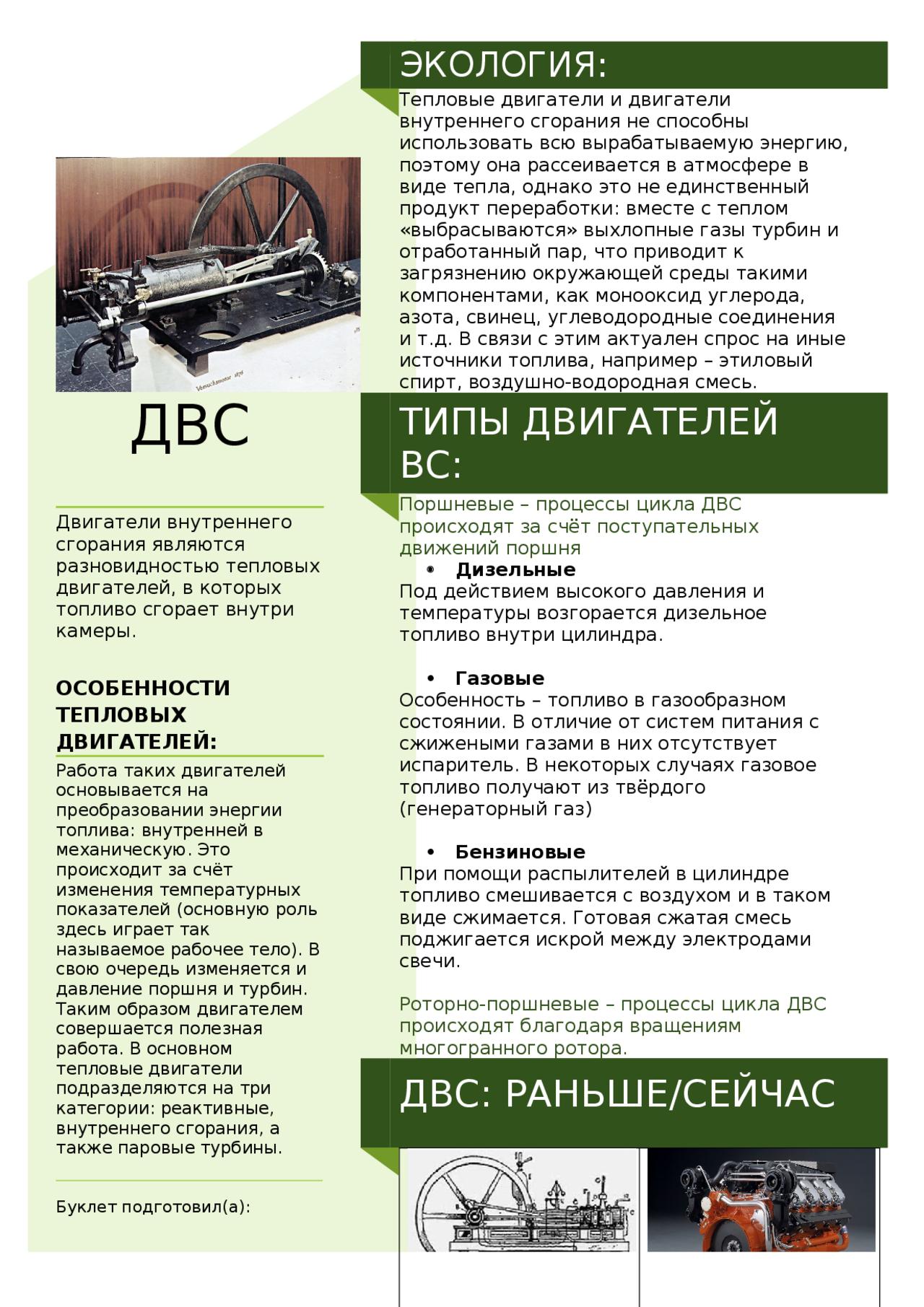 Брошюра на тему ДВС