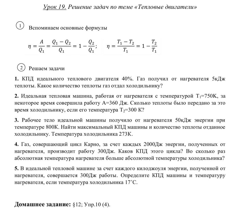 Тепловые двигатели физика 10 класс формулы