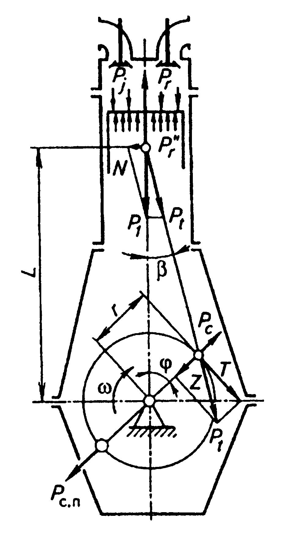 ![Схема сил действующих в КШМ]()