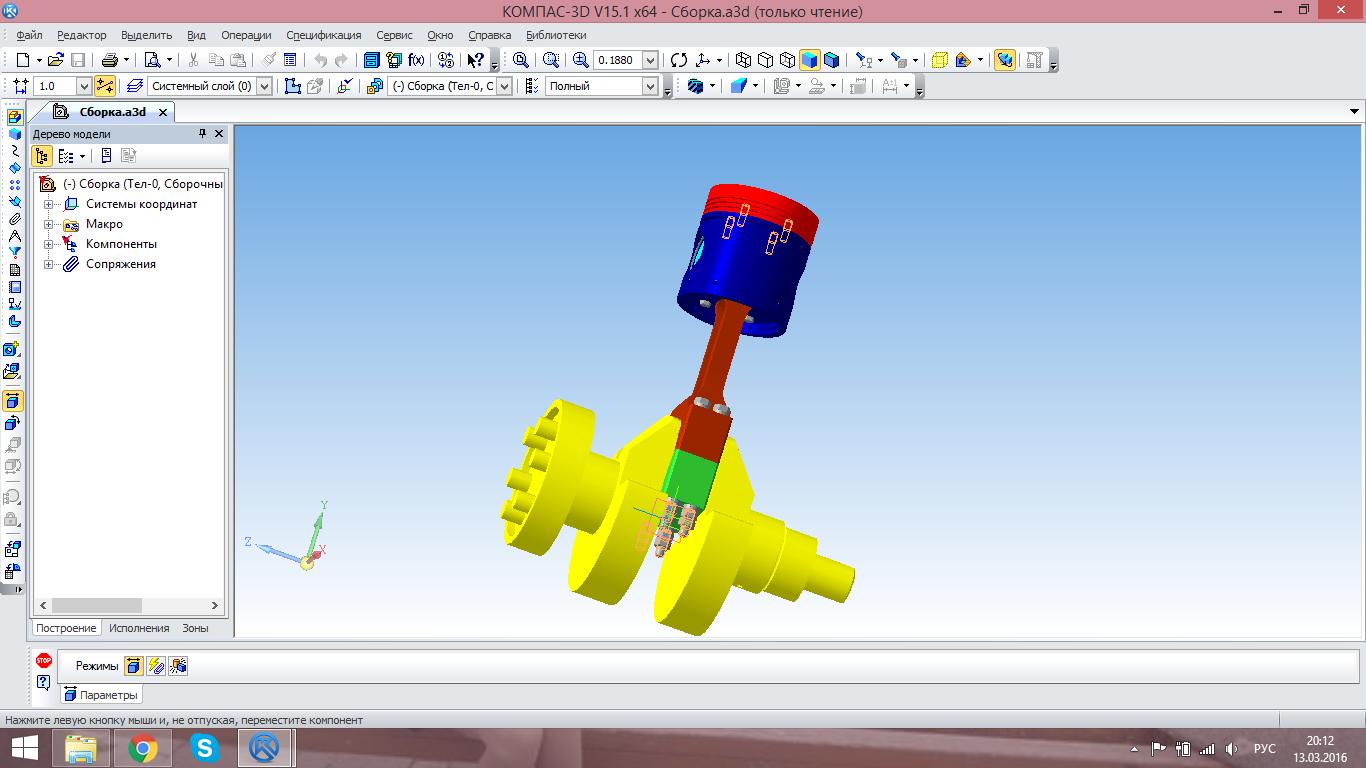 Фотография Шатунный механизм компас 3д