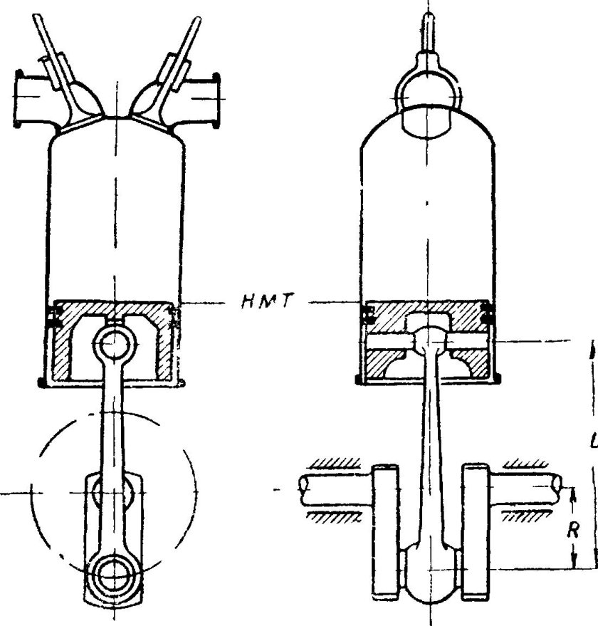 Кривошипно шатунный механизм одноцилиндрового двигателя