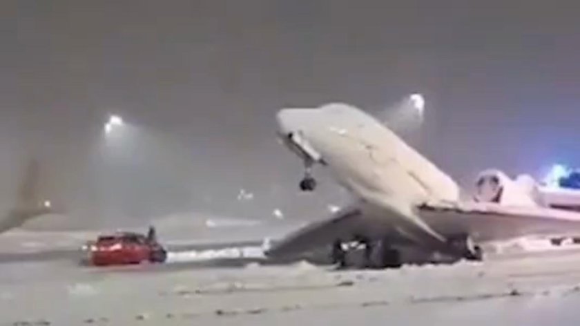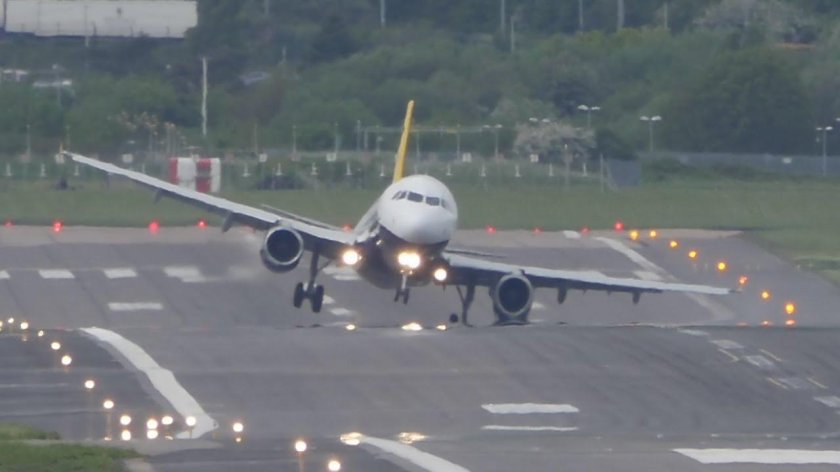 Посадка самолета при сильном ветре