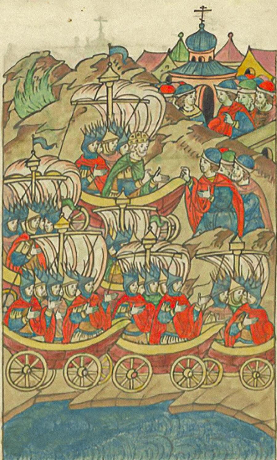 Поход князя Олега на Царьград корабли на колесах