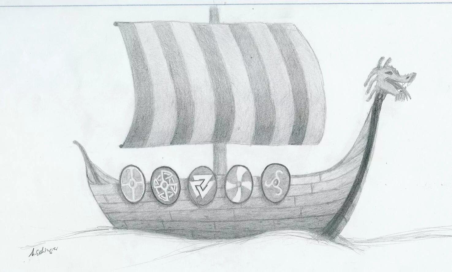 Нарисовать корабль викингов Драккар