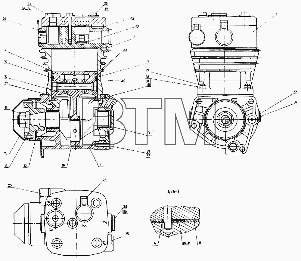 Компрессор КАМАЗ 5320 двухцилиндровый