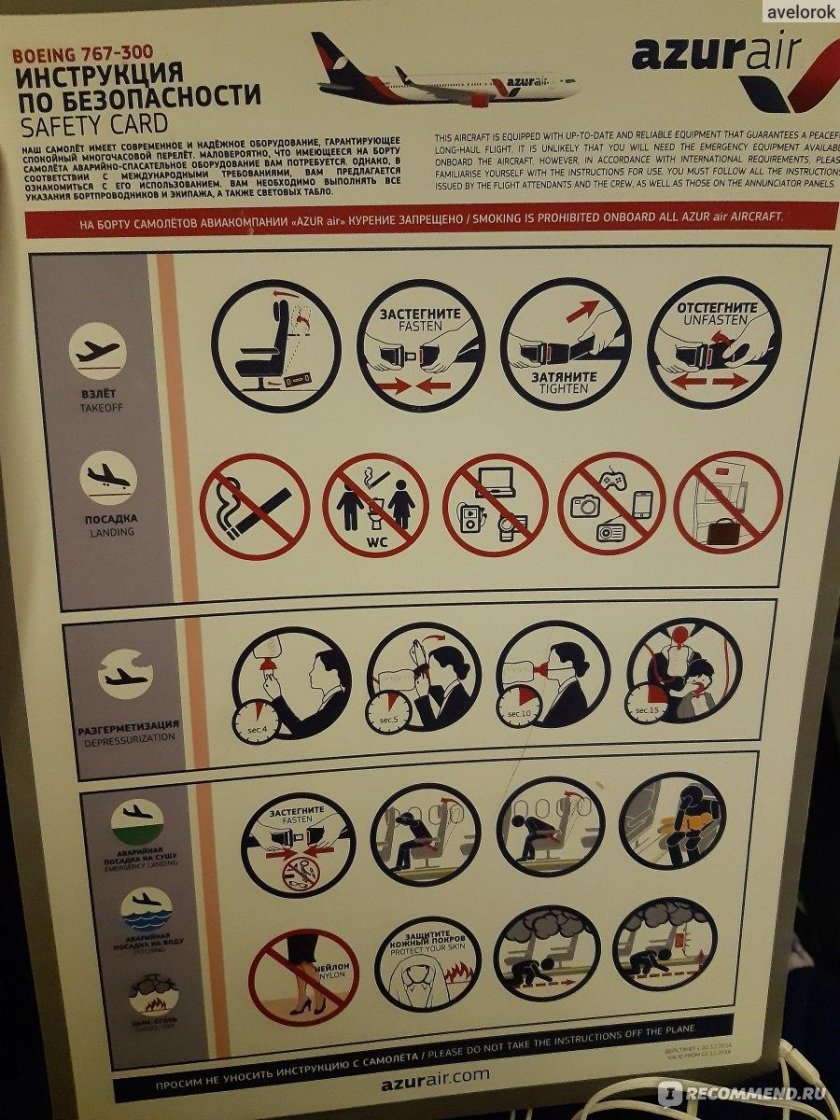 Фотография Azur Air Safety Card