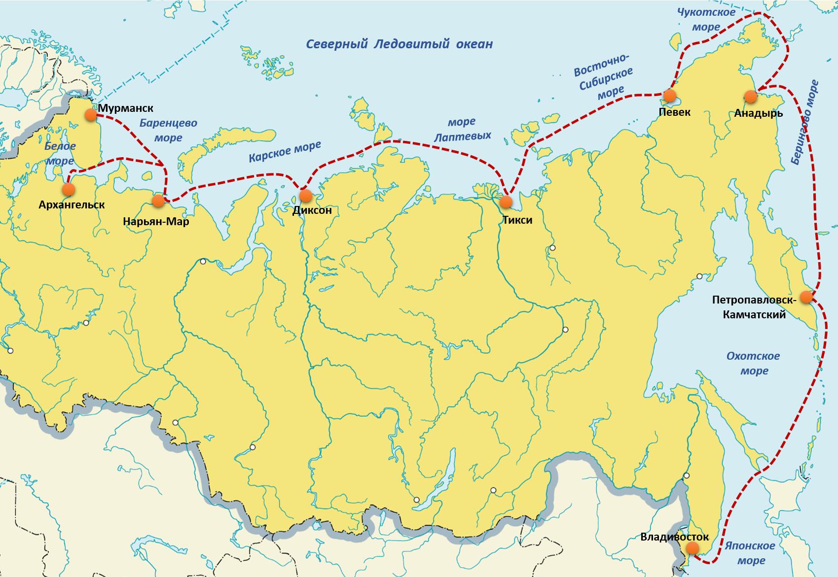 Северный морской путь на карте России где проходит